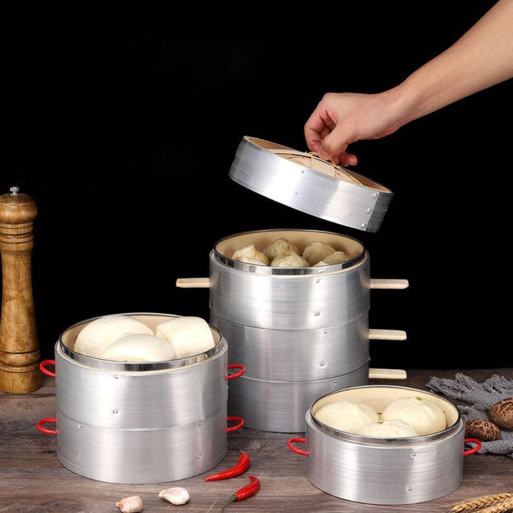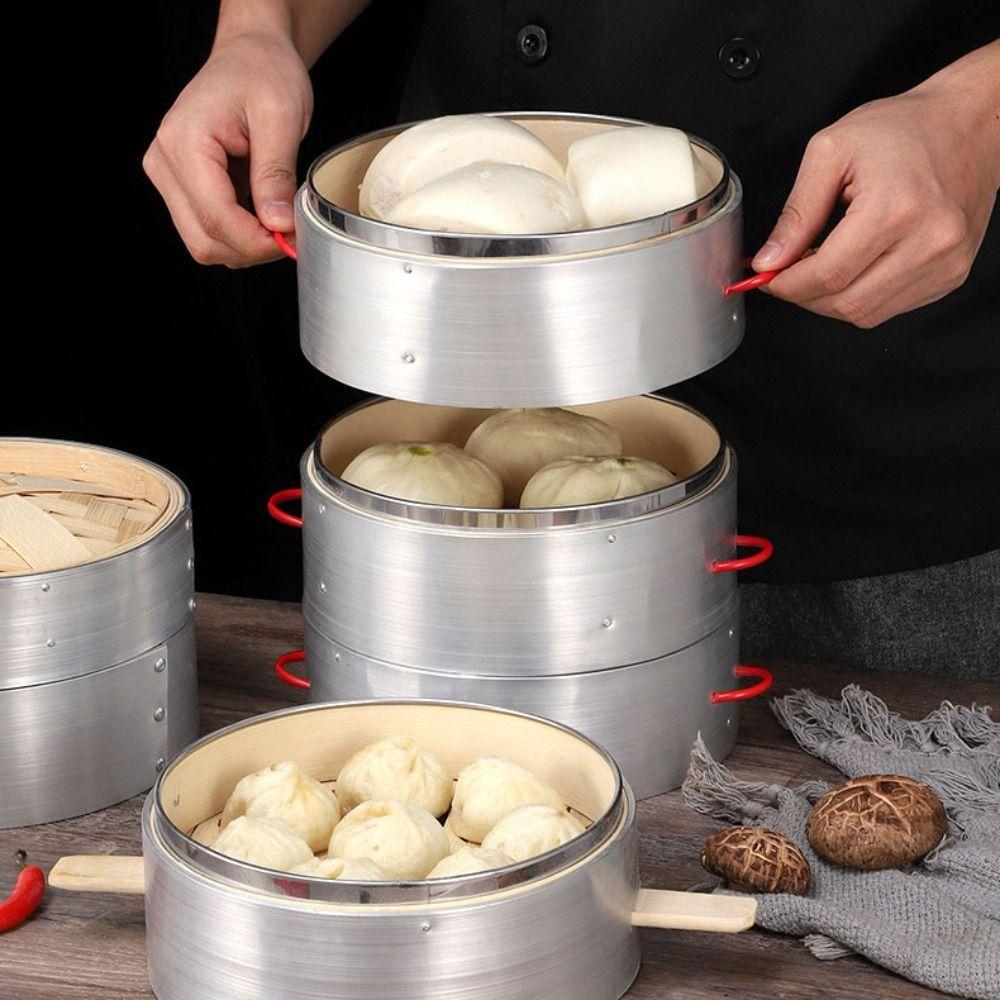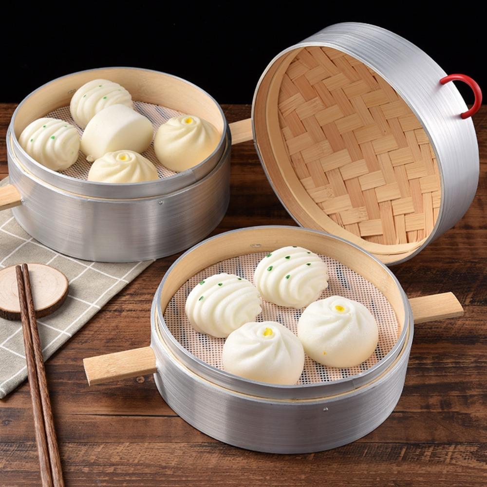 Ручка против ожогов Алюминиевый край Бамбуковая пароварка Пароварка для булочек баози Магазин для завтраков