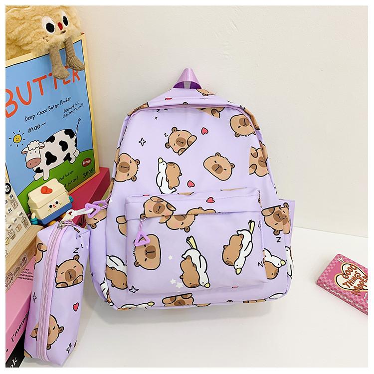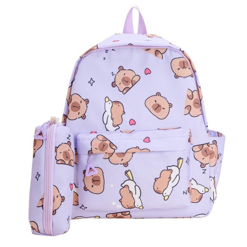 Capybara Trendy Dual Shoulder Backpack Featuring Pencil Holder For School Kids
