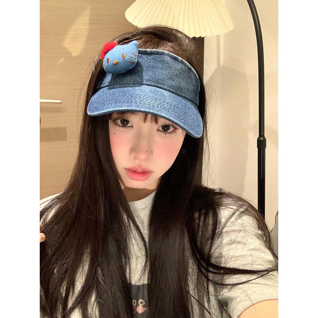 Солнечная Стильная Регулируемая Шляпа с Милым Мультяшным Принтом Кошки Дышащая Джинсовая Кепка