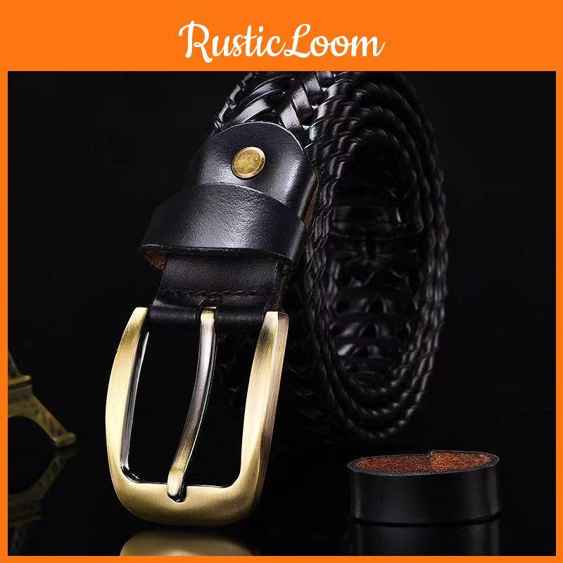 Винтажный плетеный мужской повседневный кожаный ремень с сетчатым узором и антикварной пряжкой