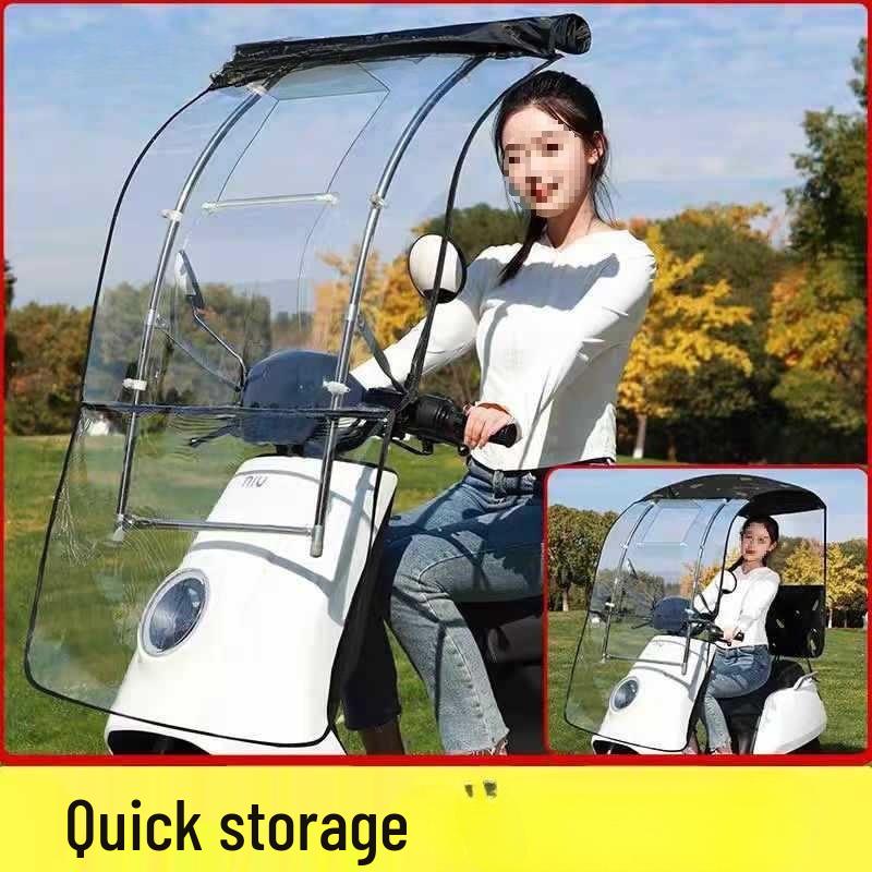 Съемный складной тент для электромобиля: Выдвижной солнцезащитный козырек, ветро- и дождезащитный для педальных мотоциклов.