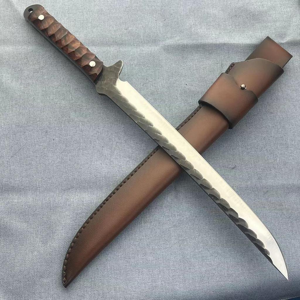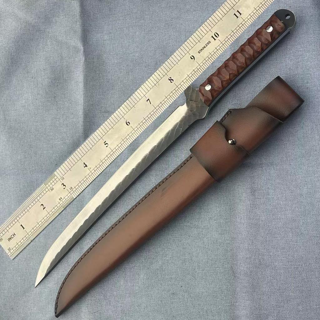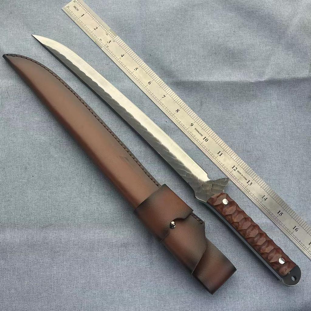 Нож для сашими с чехлом Кухонный топорик Тонкая нарезка Суши Ветчина Лезвие из стали 10Cr15MoV Ручная ковка Кухонные ножи Деревянная рукоять