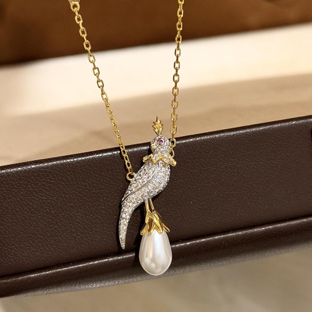 Роскошное ожерелье с жемчугом в виде капли воды и попугаем, изготовленное на заказ. Инкрустация, не вызывает аллергии. Подарочная подвеска для повседневного наряда на вечеринку по случаю дня рождения.