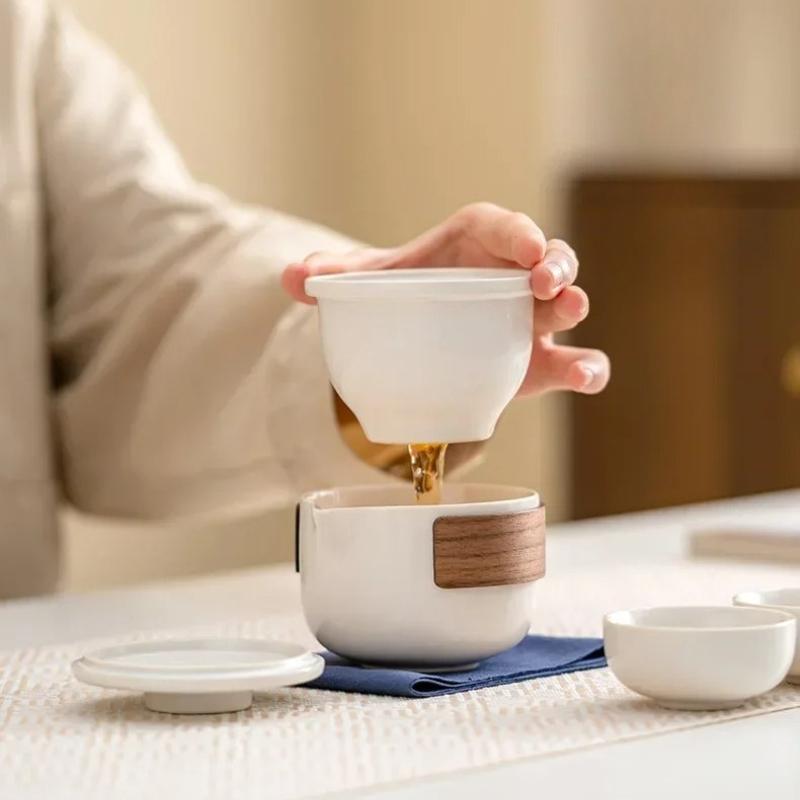 Чайный сервиз для путешествий на открытом воздухе Керамический чайный сервиз для кунг-фу Портативные чайные наборы Чайник Чашка для заваривания воды Фильтр-сепаратор для воды