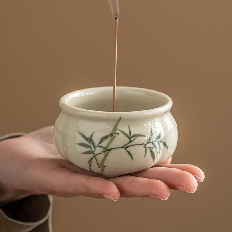 Emerald Green Asparagus Fern Three-Legged Incense Burner Home Indoor Chinese Zen Tea Set Ceramic Aromatherapy Stove Tea Ceremony