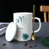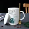 450 мл креативная зеленая листовая белая фарфоровая кружка с ложкой, кружки для напитков в подарок, фарфоровые кружки кофейная чашка для чая/кофе/молочная чашка