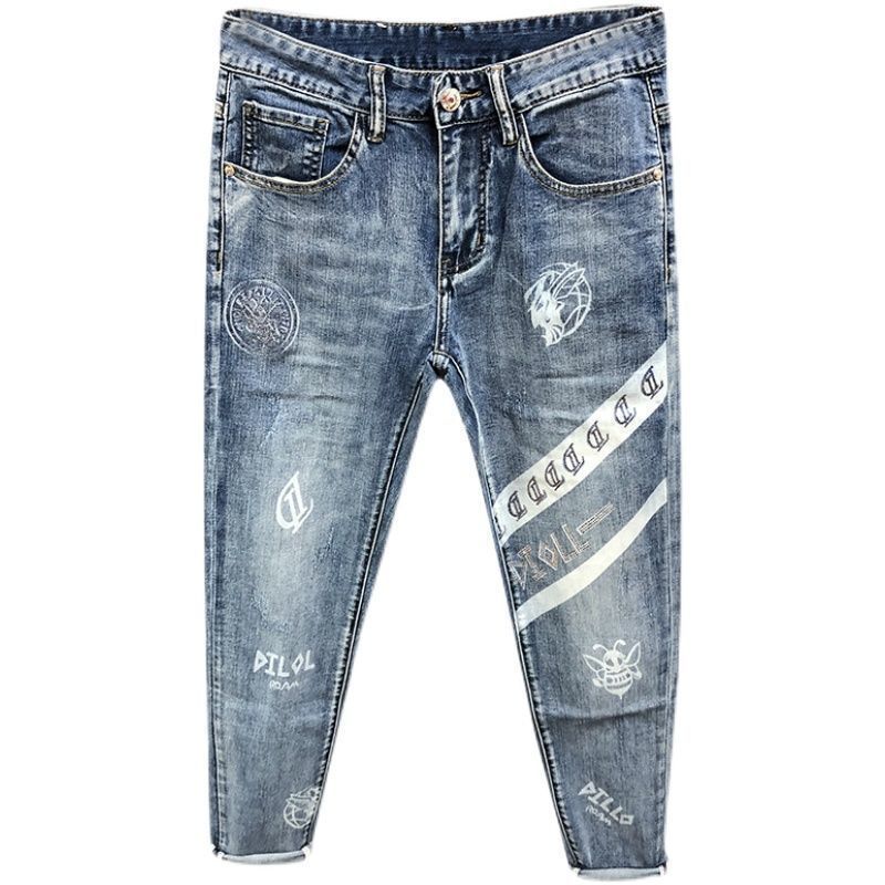 Мужские модные джинсы с принтом, джинсовые брюки с цветными блоками, узкие прямые брюки с буквенным принтом — купить товар онлайн с бесплатной доставкой по всему миру!