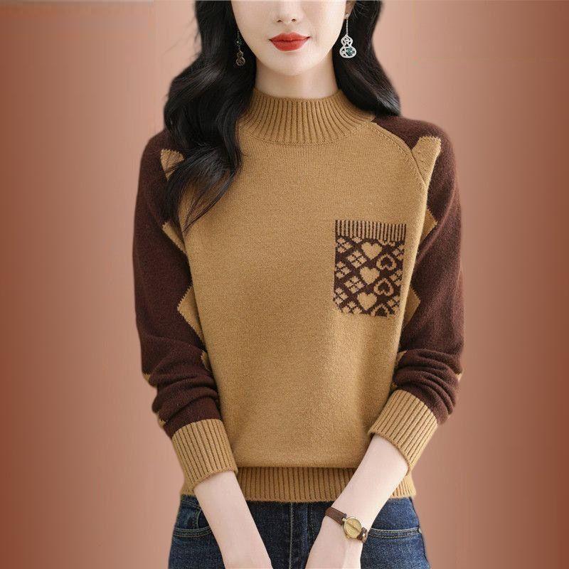 Женский свитер с принтом Осень Зима Толстый Мягкий С высоким воротником Свитер Цветовой блок Свободной вязки Пуловер Топ