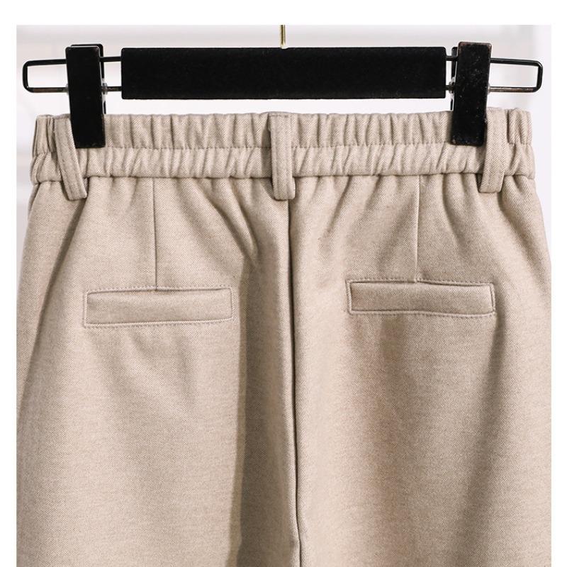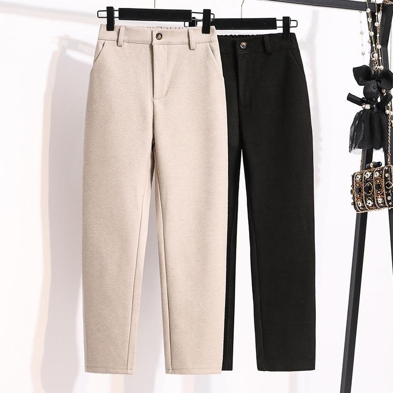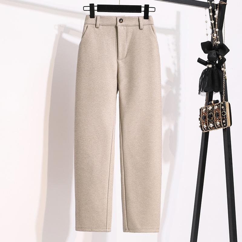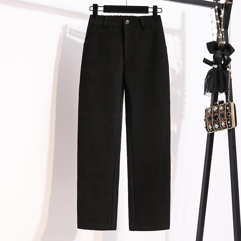 Утепленные твидовые брюки для женщин, осенне-зимние брюки прямого кроя больших размеров, повседневные брюки