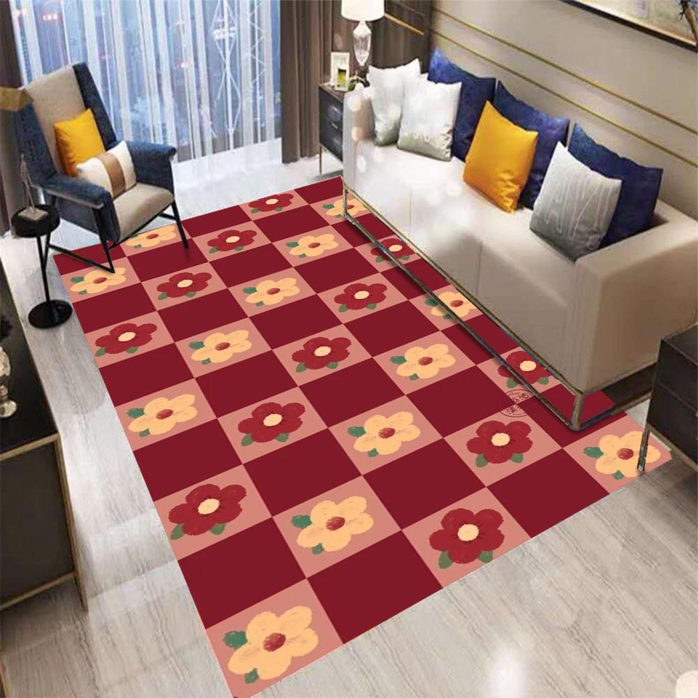 Checkered Floral Small Fresh Carpet Washroom Floor Mat Rugs Living Room Rugs for Bedroom Moderne Home Dekoration