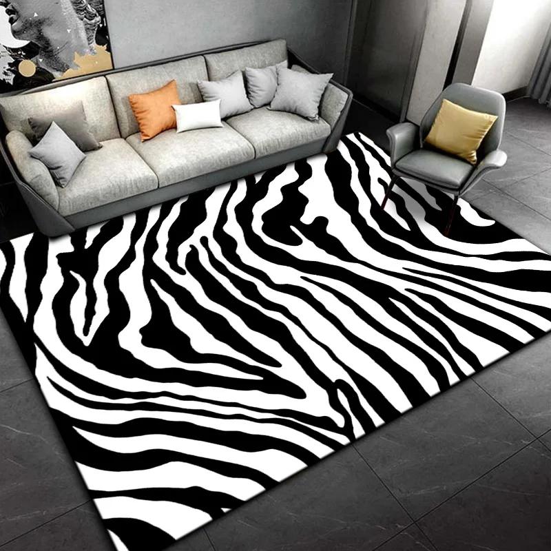 Ковер с принтом зебры черного и белого цвета, большой, ковер для гостиной, спальни, кухни, придверный коврик для декора, нескользящий коврик для пола