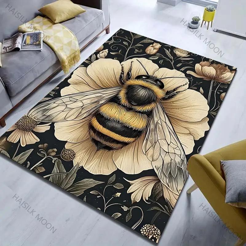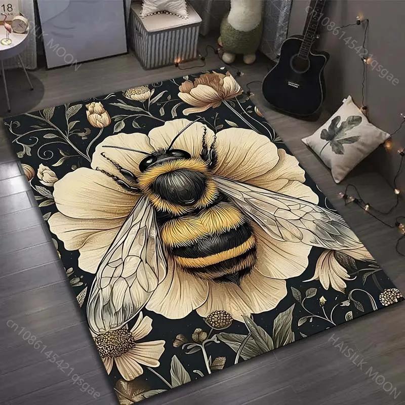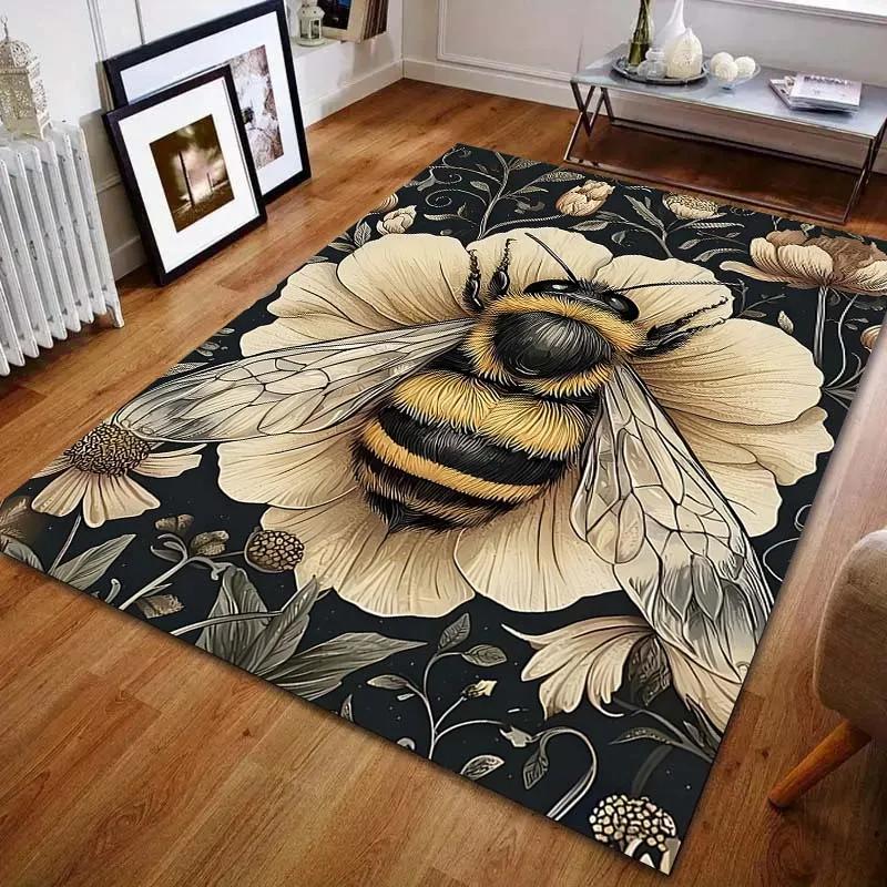 1 шт. Ковер в стиле ретро с принтом пчел и цветов, Современный домашний декор, Коврик для зоны, Гостиная, Спальня, Прикроватный, Под диван, Проход, Коридор, Напольный коврик