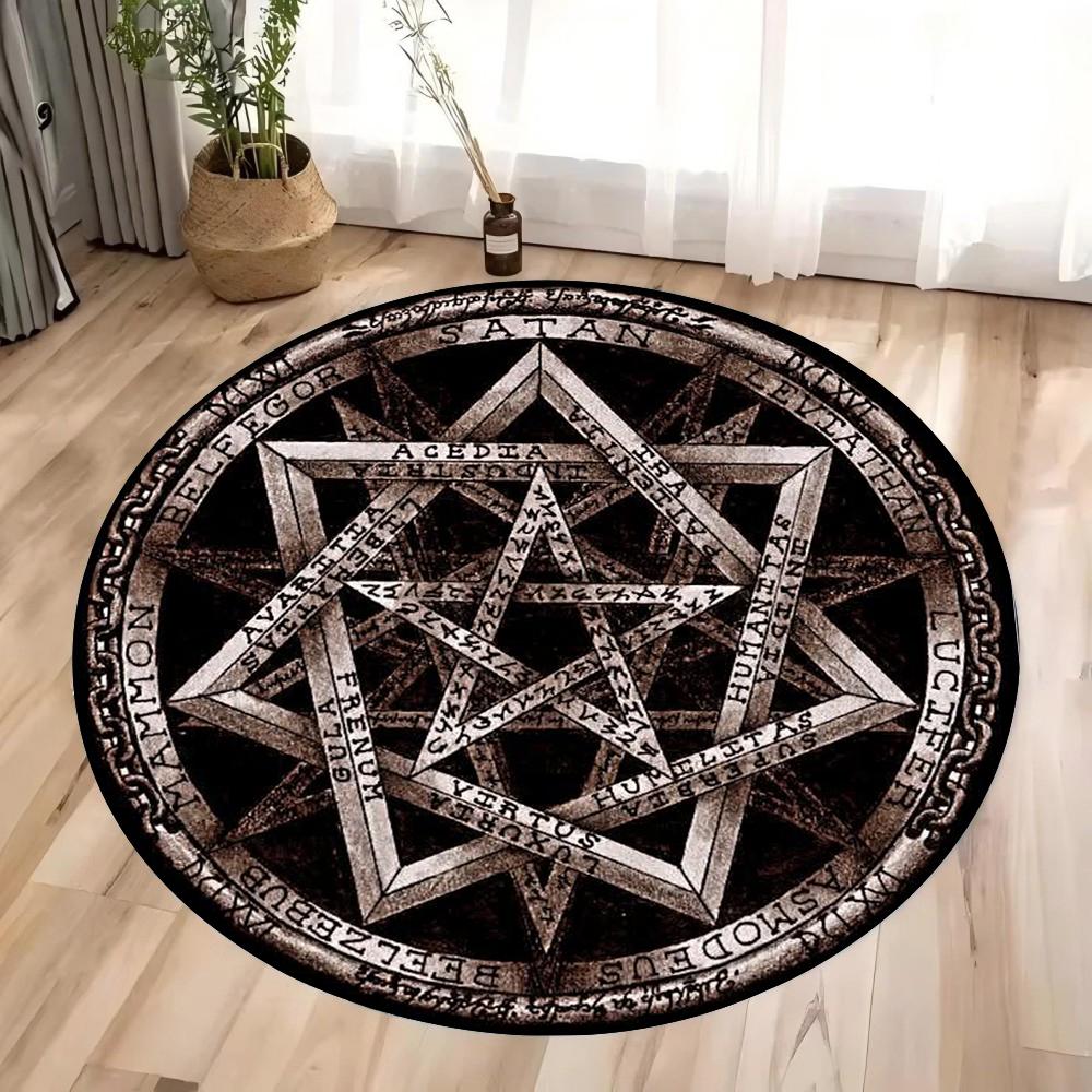 Магические Оккультные Руны Круглый Ковер Руны из Ада Коврик Сатанинский Круг Ковер Ведьма Готический Ковер Рок Гот Домашний Декор