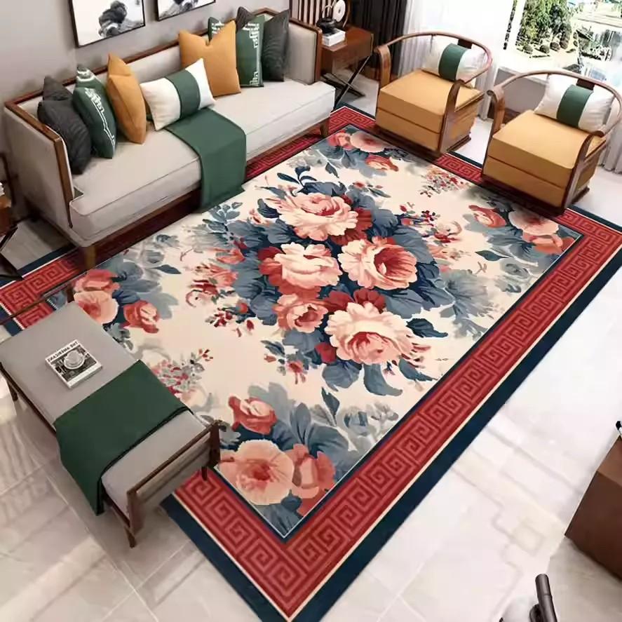 Ковер с цветочным узором в китайском стиле для гостиной, украшение дома, ковры для диванной зоны, нескользящий коврик для спальни, моющийся придверный коврик