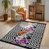 Black White Zigzag Floral Area Rug Purple Orange Lily Botanical Pattern Modern Chevron Decorative Runner Tropical Style Home