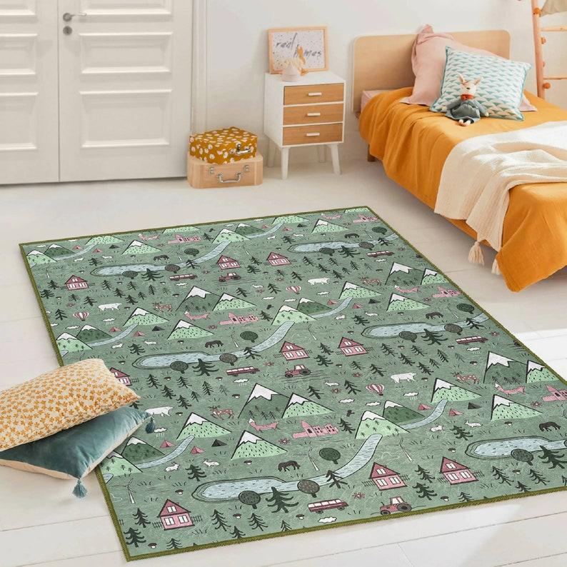 Милый детский ковер Village Green на лесную тему, джунгли, моющийся игровой коврик, ковер с индивидуальным дизайном, легко чистящийся, для детской, спальни, игровой комнаты