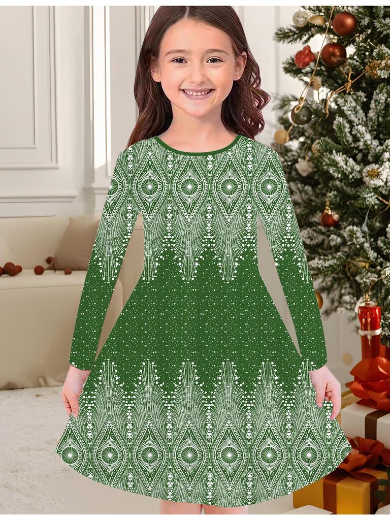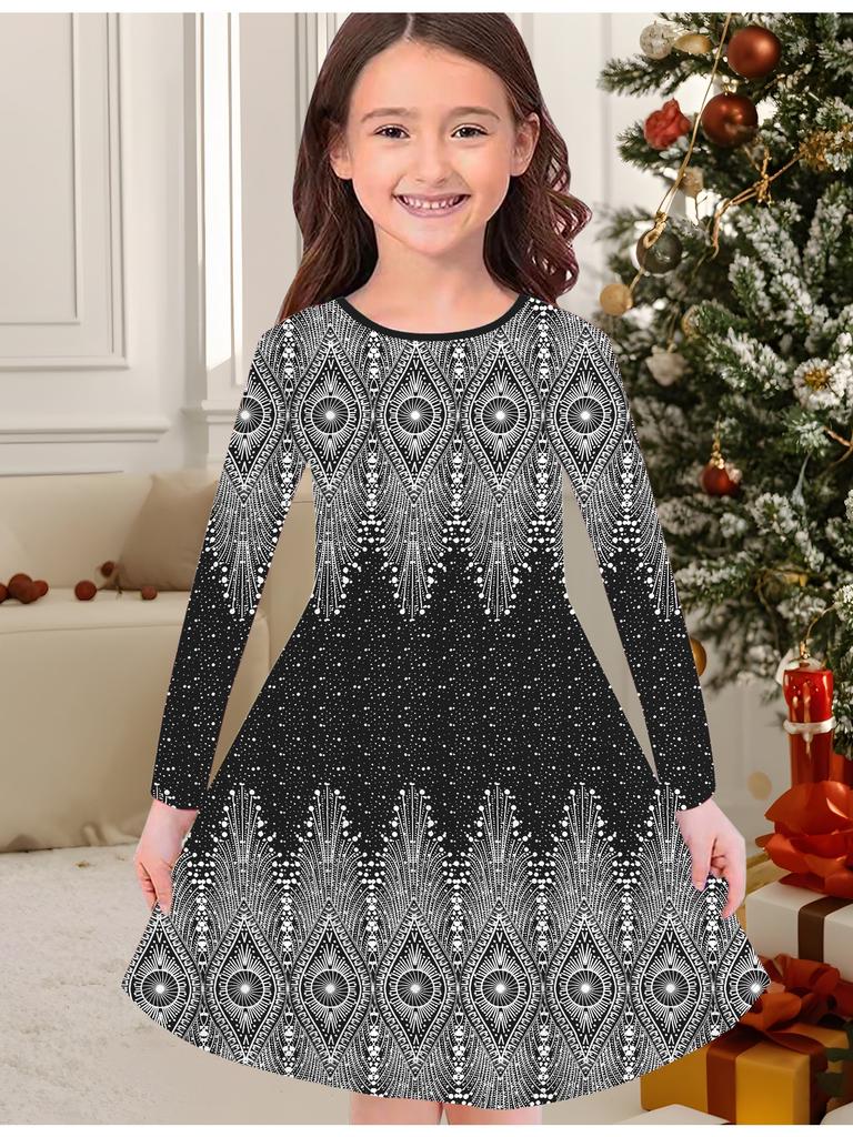 Модное осенне-зимнее платье для девочек, 3D принт с винтажным узором, с круглым вырезом, длинное детское платье-футболка, повседневное, универсальное, рождественская одежда