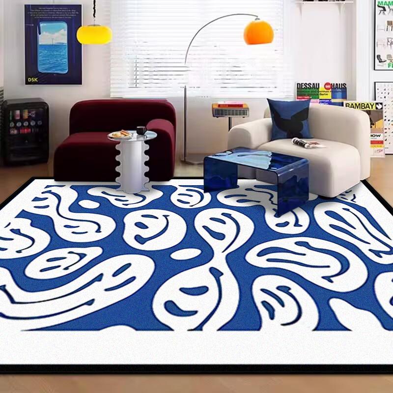 Синий абстрактный ковер для гостиной Современная роскошная декорация Домашние ковры для спальни Большой размер Нескользящий Легкая чистка Напольный коврик