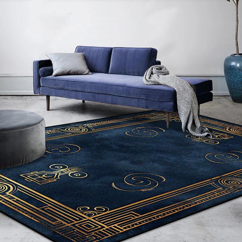 Современная Роскошная Декорация Дома Синий Ковер Золотая Окантовка Нескользящие Ковры для Гостиной Мягкий Моющийся Коврик для Дивана и Стола Декор Спальни — купить товар онлайн с бесплатной доставкой по всему миру!