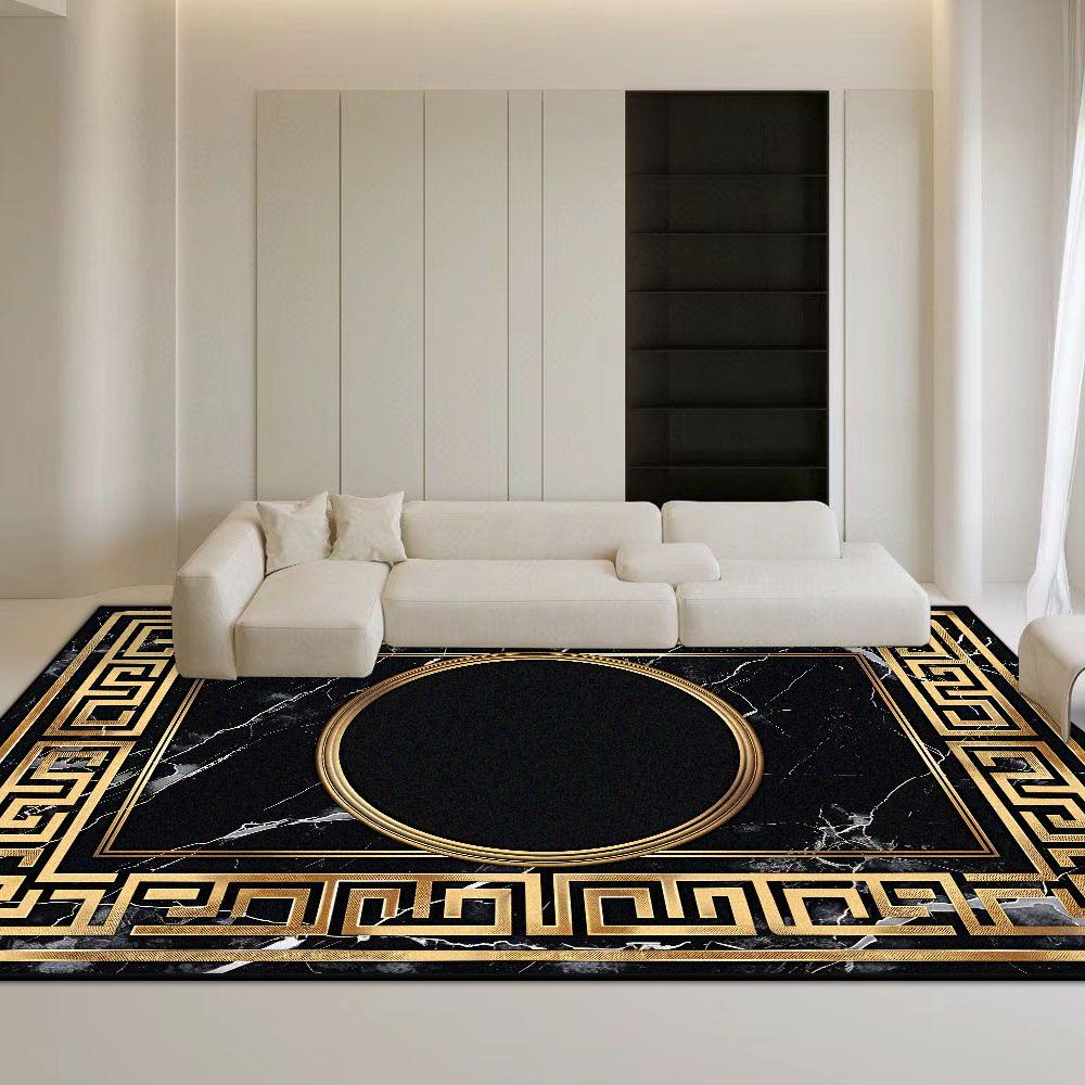 Ковер в стиле мрамора черный нескользящий большого размера с золотой каймой роскошный декоративный коврик для гостиной мягкий легко чистящийся коврик для журнальных столиков