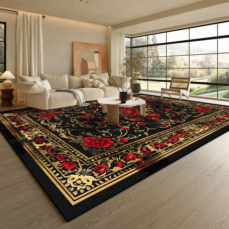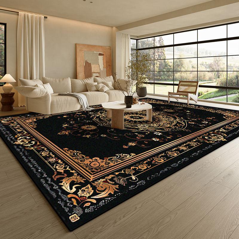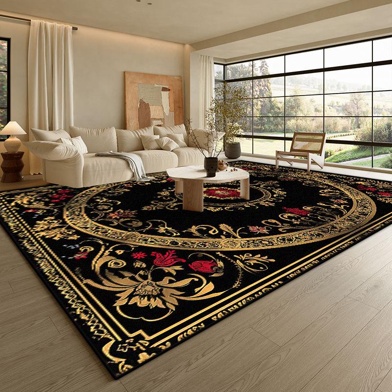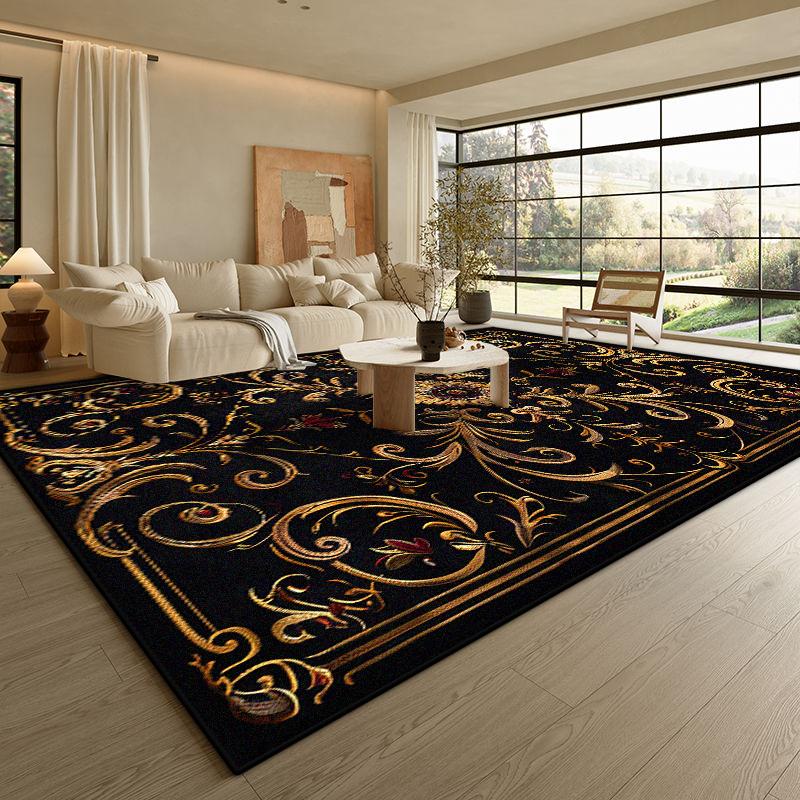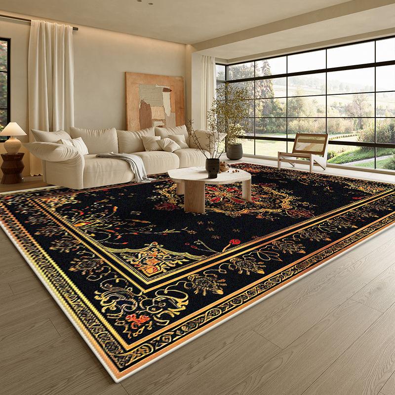Современный Черный Роскошный Ковер Гостиная Золотая Кайма Противоскользящий Коврик для Кофейных Столиков Мягкий Складной Офисный Декор для Зоны Отдыха Ковер Легко Чистить