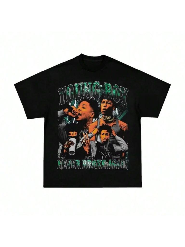 2025 Youngboy Never Broke Again Американская Ретро Хип-Хоп Рэп Фигурный Принт Футболка с Коротким Рукавом Высокое Качество Люксовый Бренд Ins Y2k(1)