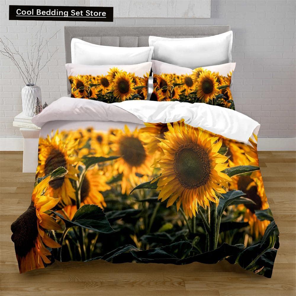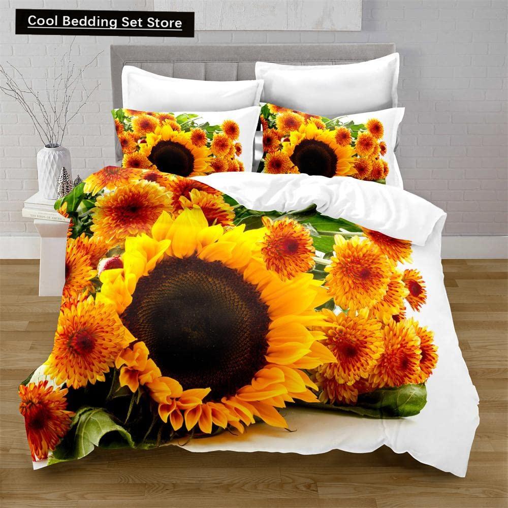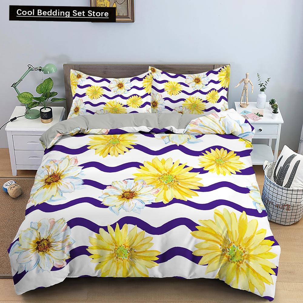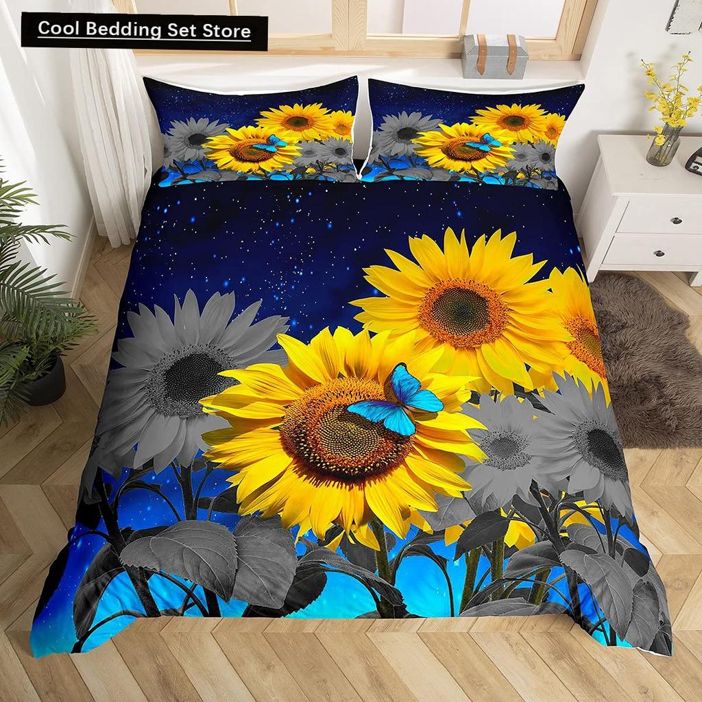 Yellow Sunflower King Queen Bedding Set Blossom Flowers Duvet Cover Blue Butterfly Floral Quilt Cover Polyester Comforter Cover