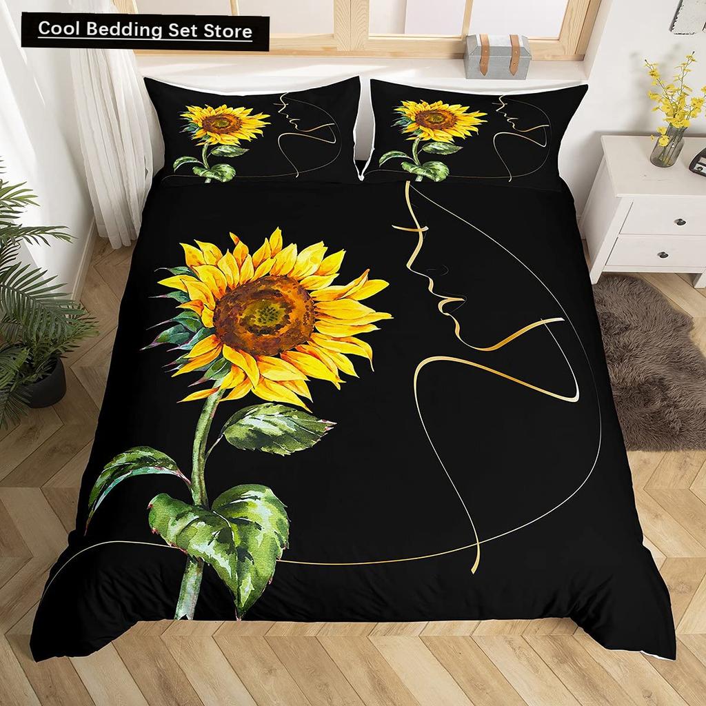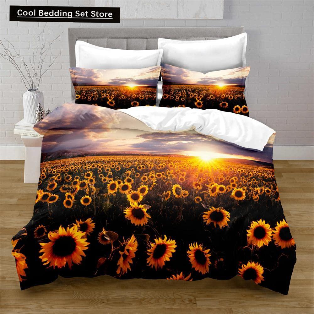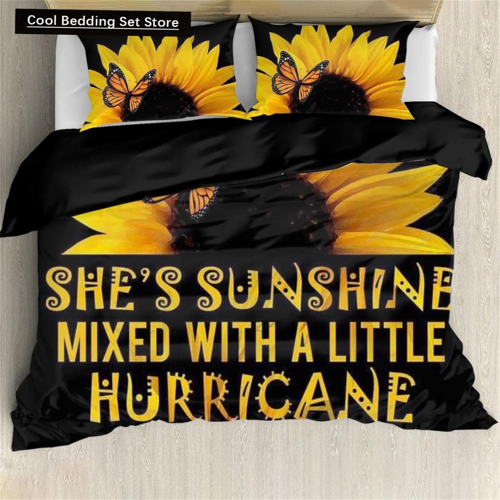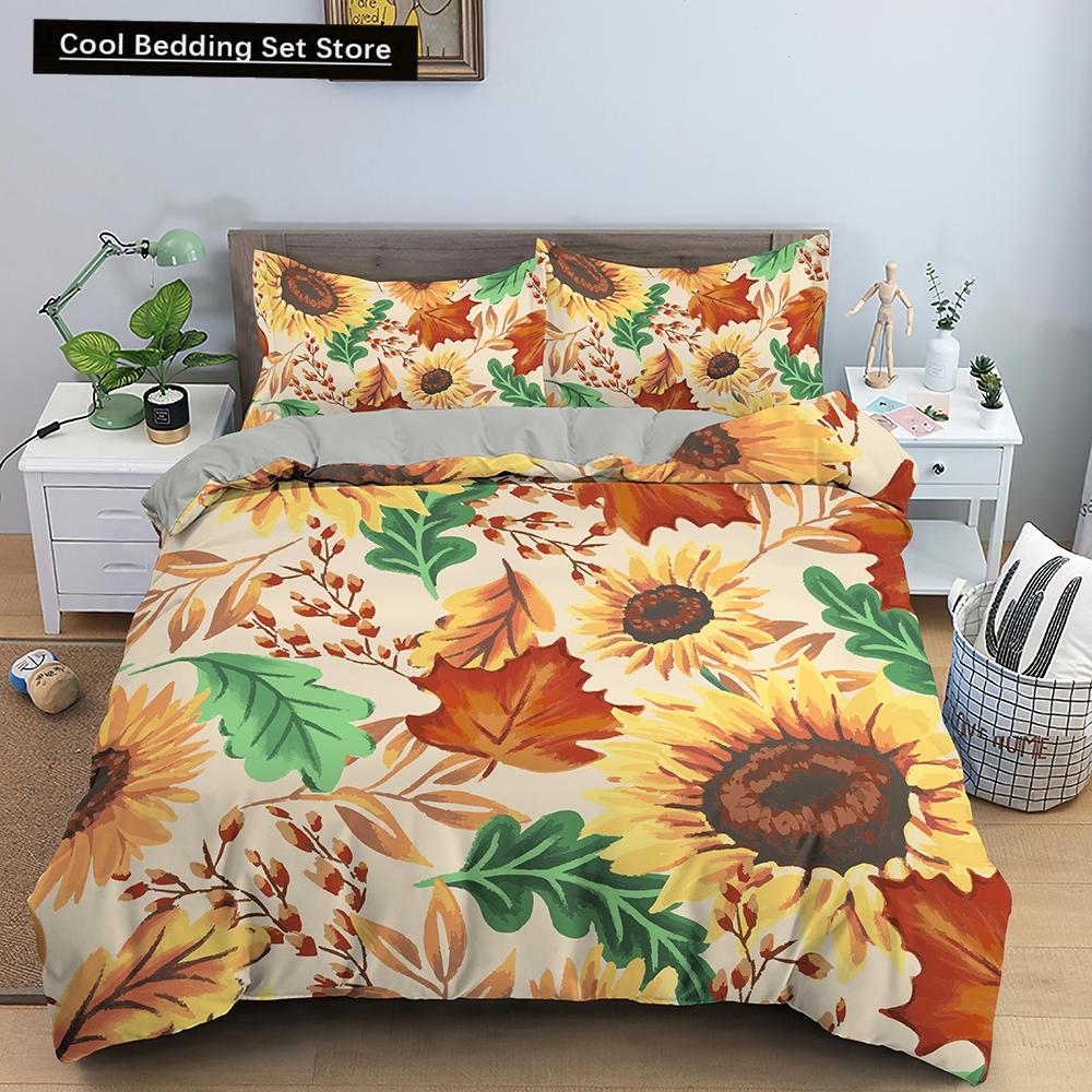 Yellow Sunflower King Queen Bedding Set Blossom Flowers Duvet Cover Blue Butterfly Floral Quilt Cover Polyester Comforter Cover