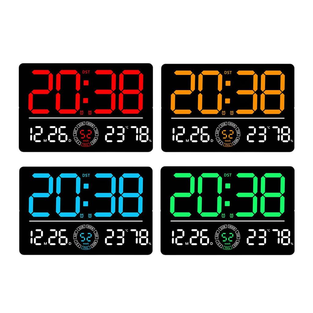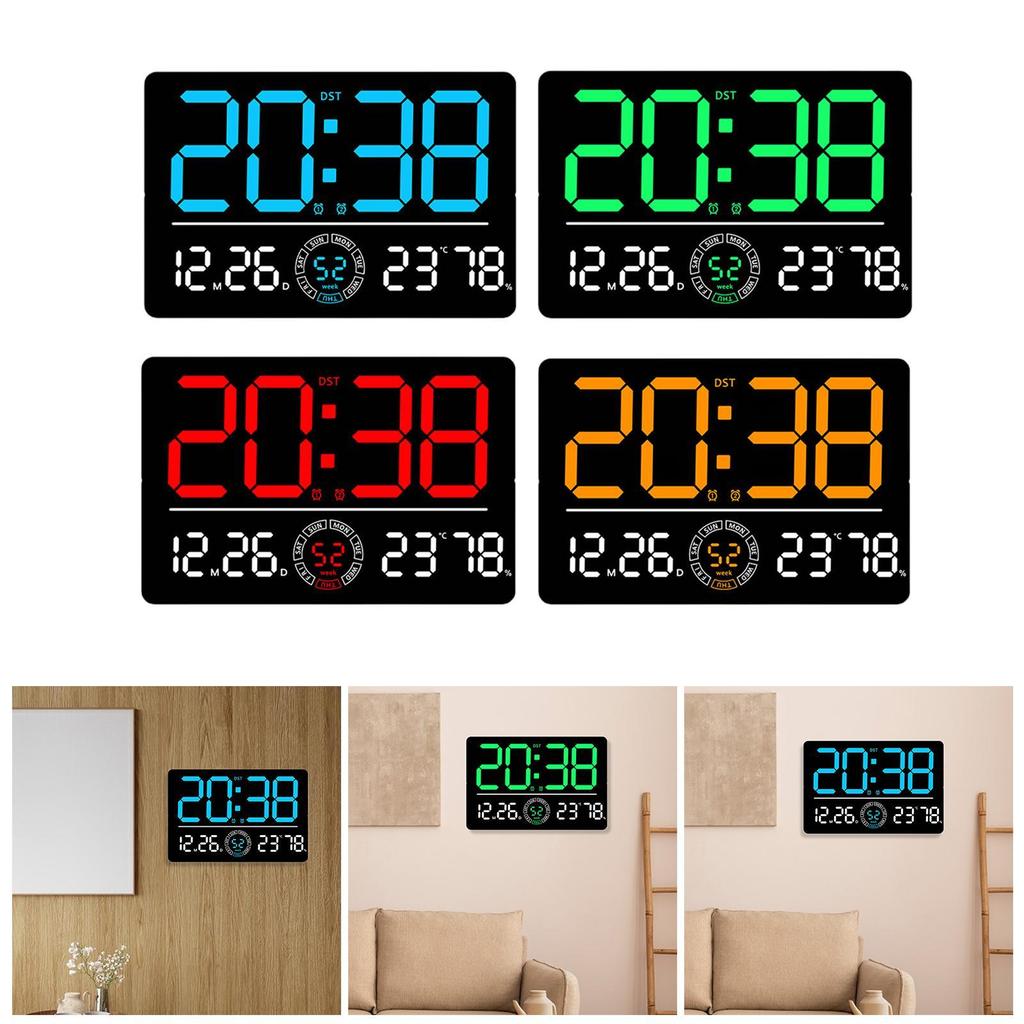 Digital Wall Clock Home Decor Large Display Humidity Display 12/24 LED Alarm