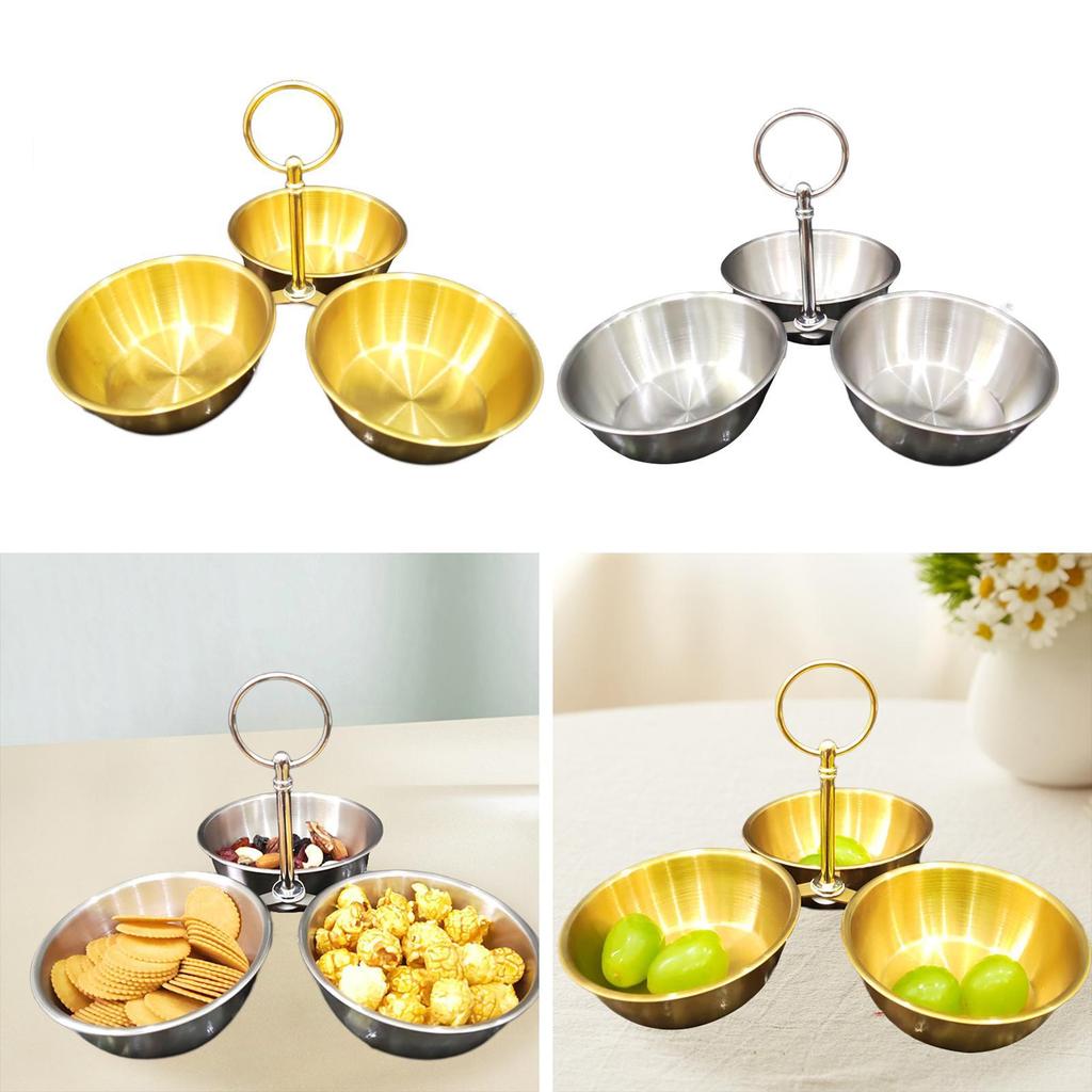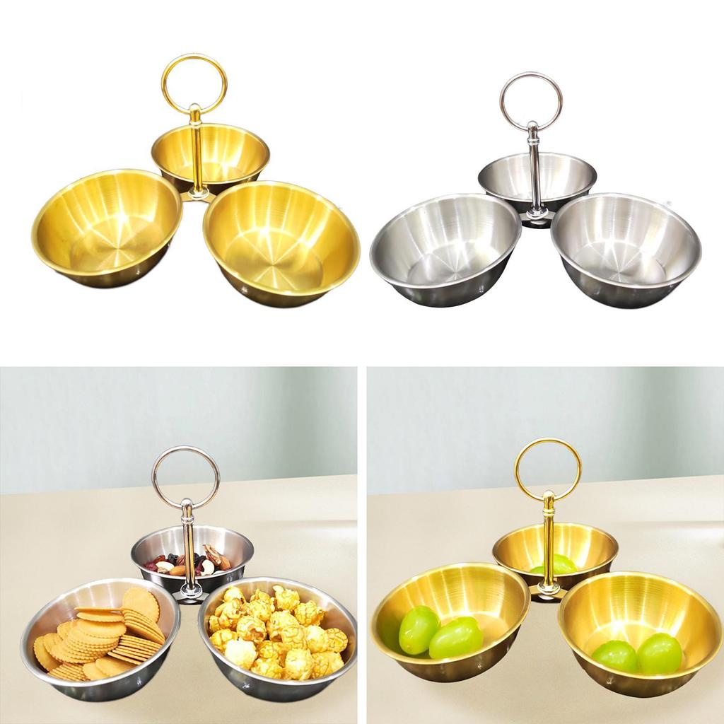 Набор сервировочных мисок Подставка для закусок с мисками Нержавеющая сталь Сервировочная подставка для приправ 3