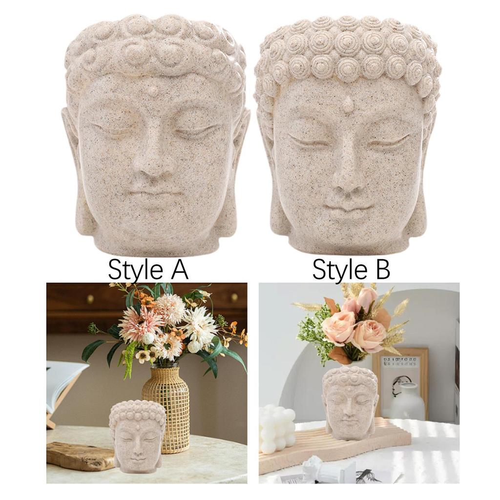 Buddha Head Figurine Flower Pot Statue Resin with Drainage Holes Bonsai Planter