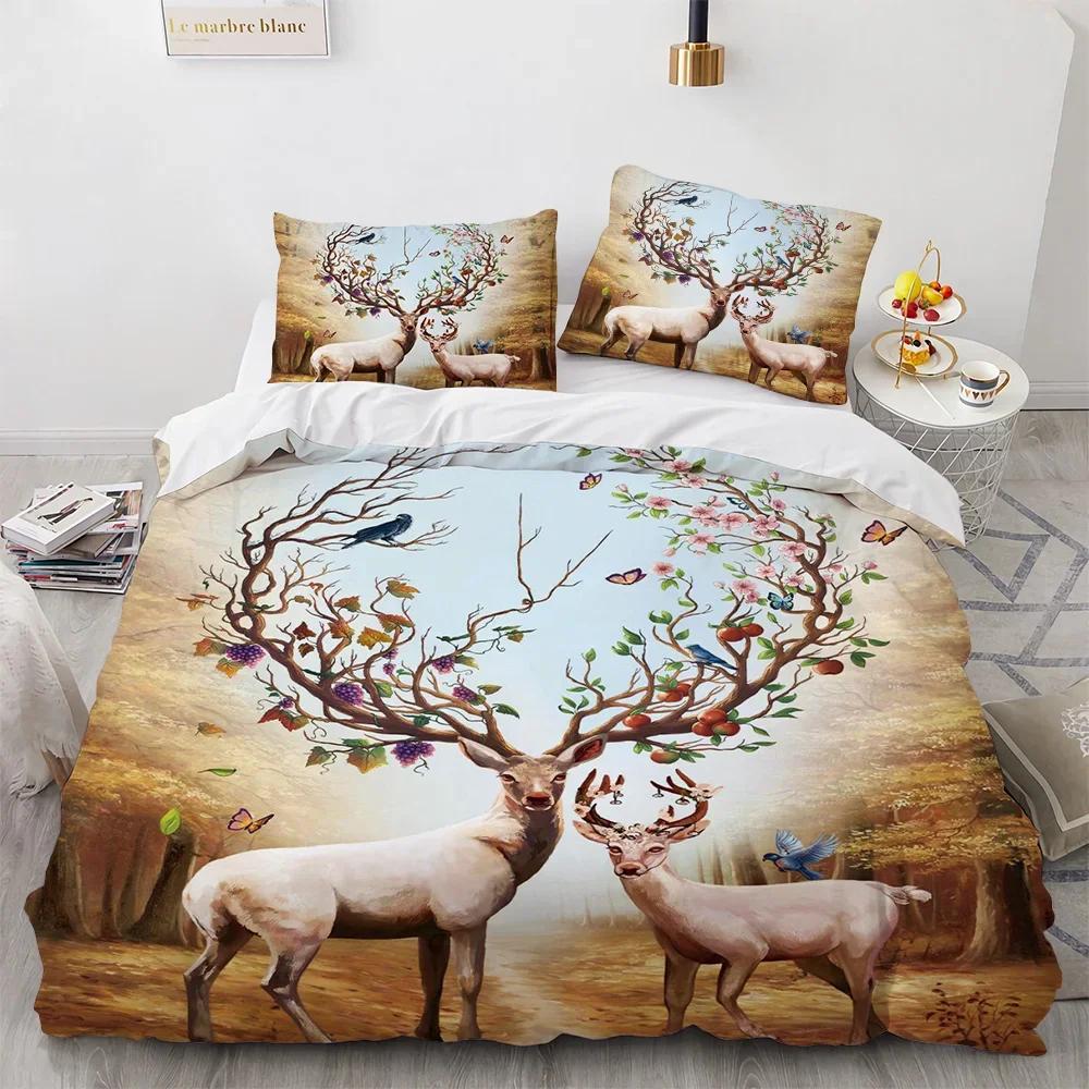 Комплект постельного белья с изображением оленя, с рисунком диких животных и цветов, комплект постельного белья из полиэстера, двуспальная кровать, односпальная кровать, полный размер, покрывало для детей, мальчиков и девочек