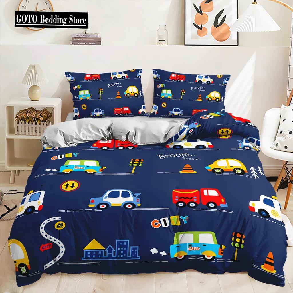 Зимнее постельное белье из микрофибры для детей, мультяшные игрушки, машинки, инженерная техника, автобусы, такси, одеяло, комплекты постельного белья, пододеяльник + наволочки