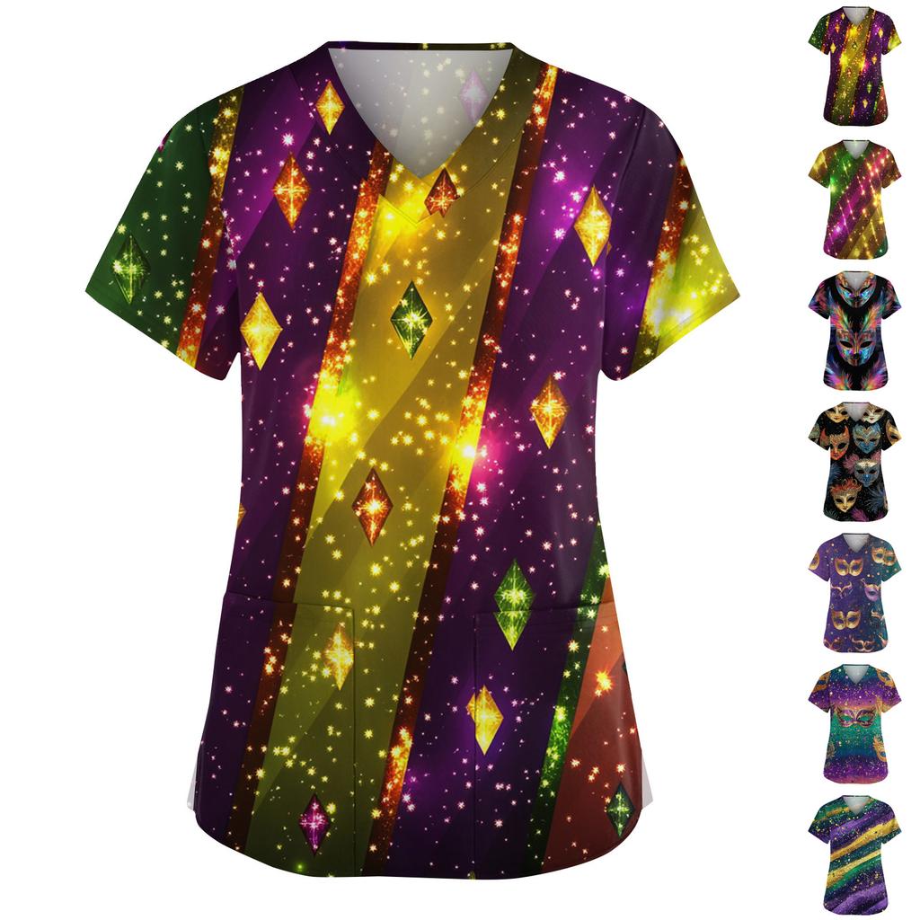 Женская мода V-образный вырез короткий рукав комбинезон с карманами принт топы одежда — купить товар онлайн с бесплатной доставкой по всему миру!