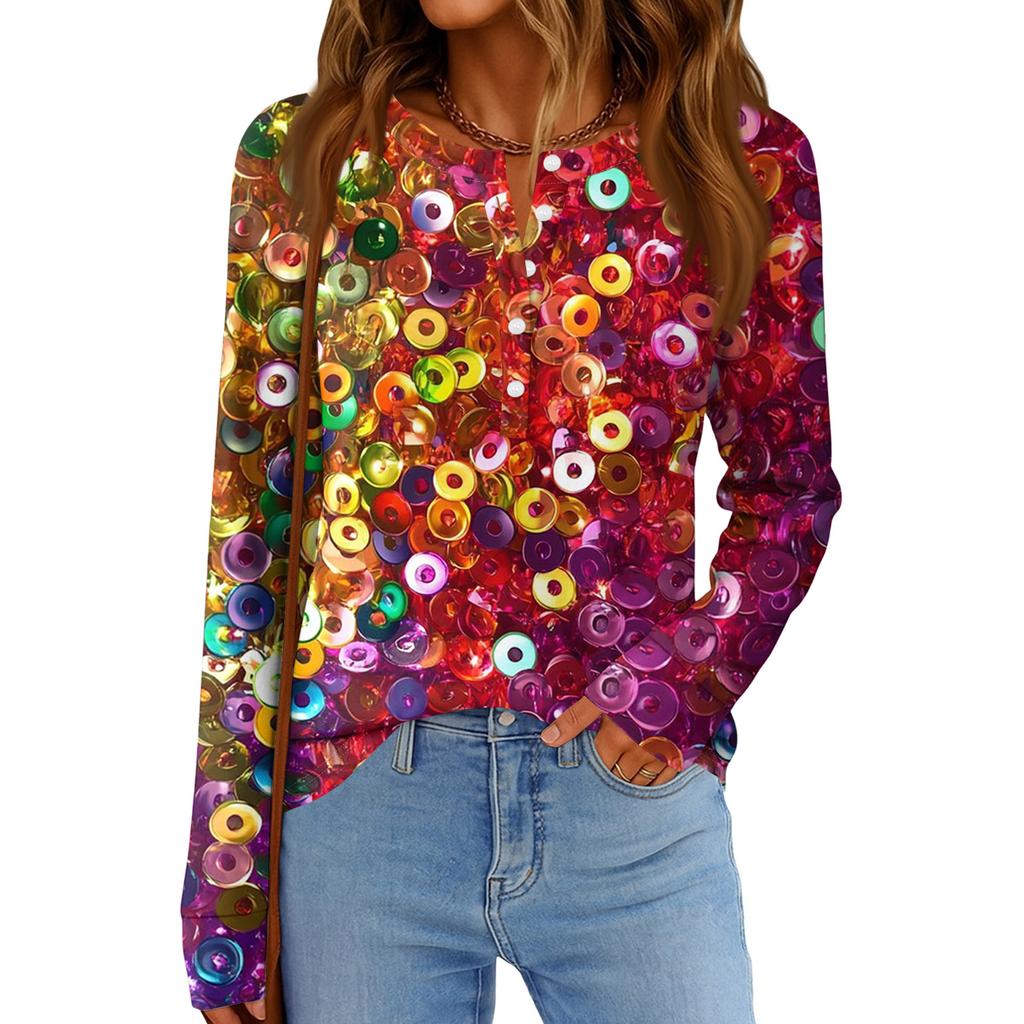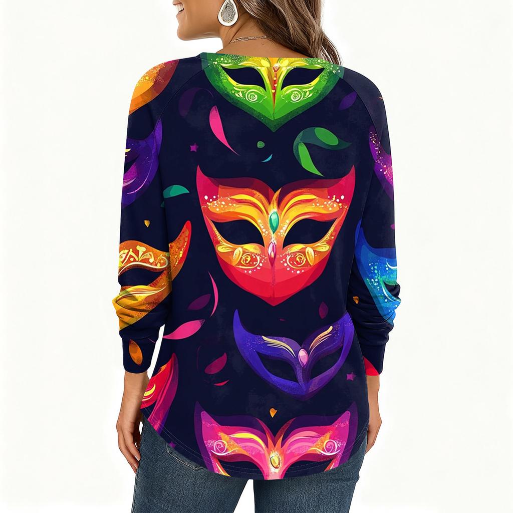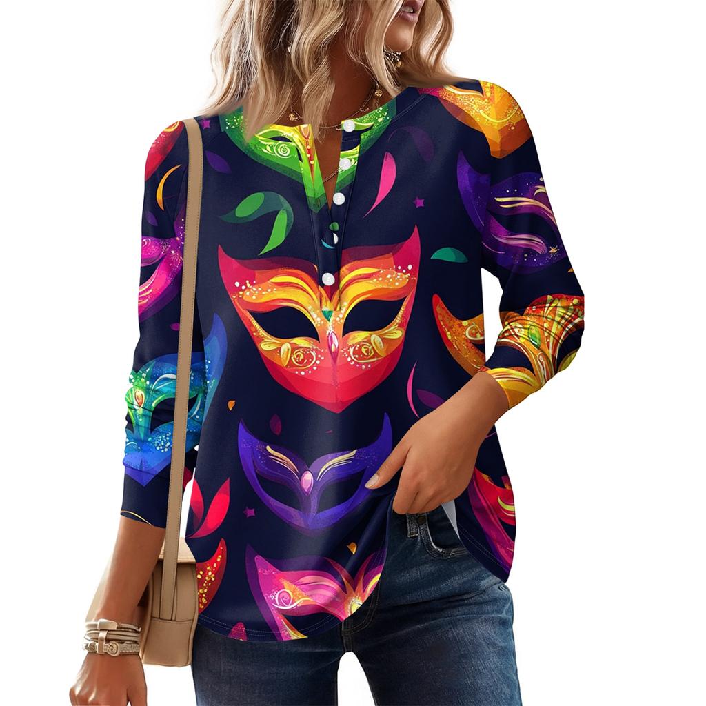 Женская модная свободная повседневная блузка с длинным рукавом и карнавальным принтом