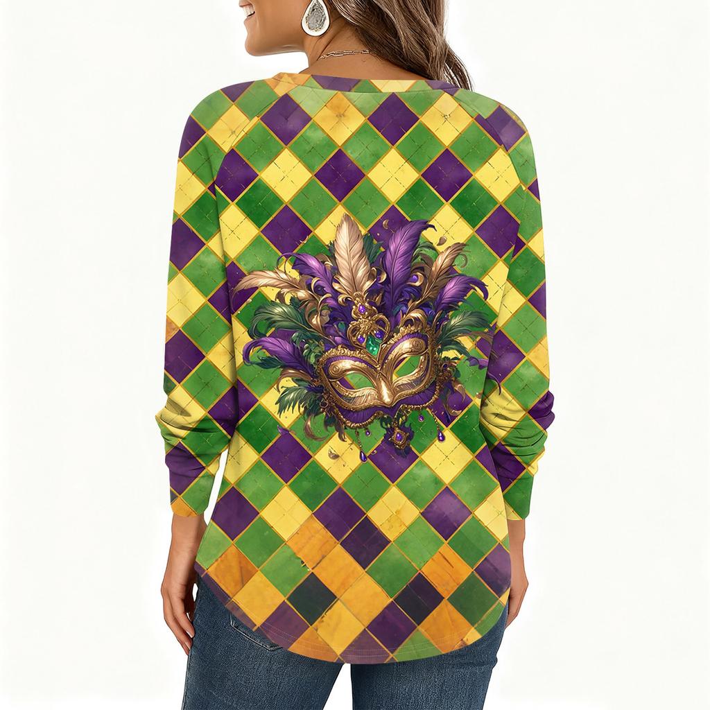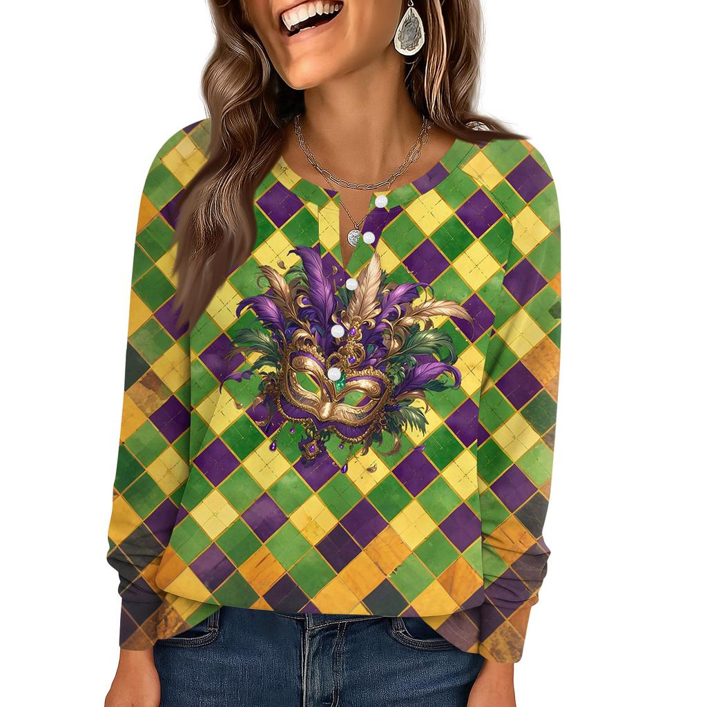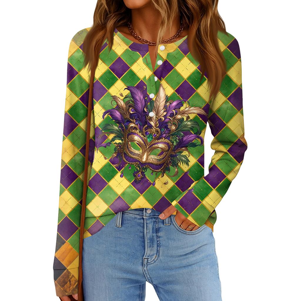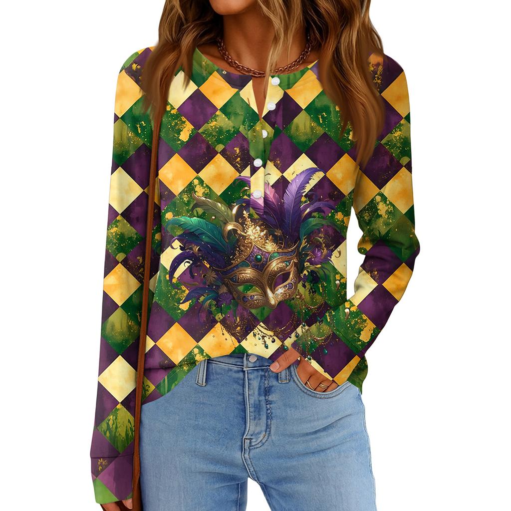 Женская модная свободная повседневная блузка с длинным рукавом и карнавальным принтом