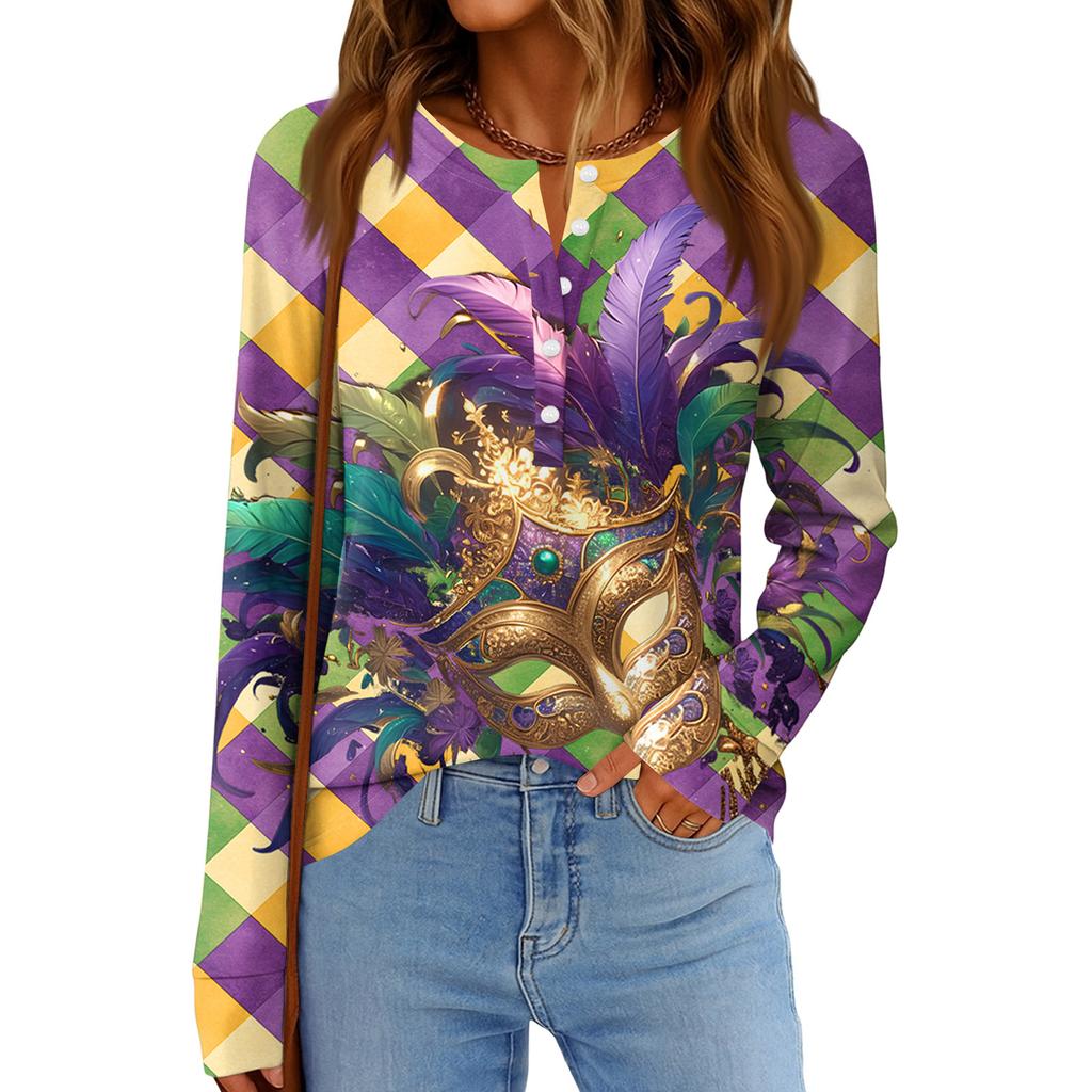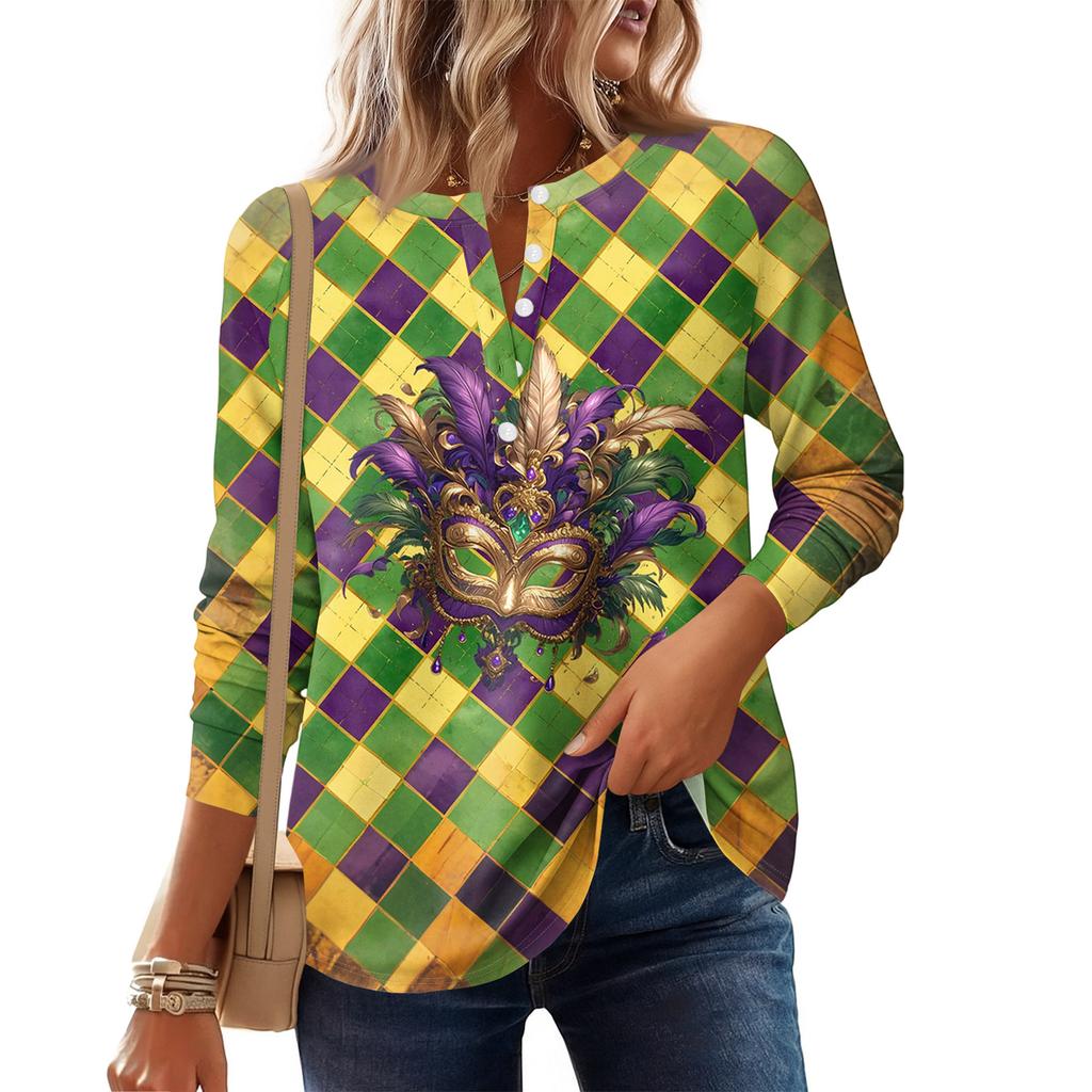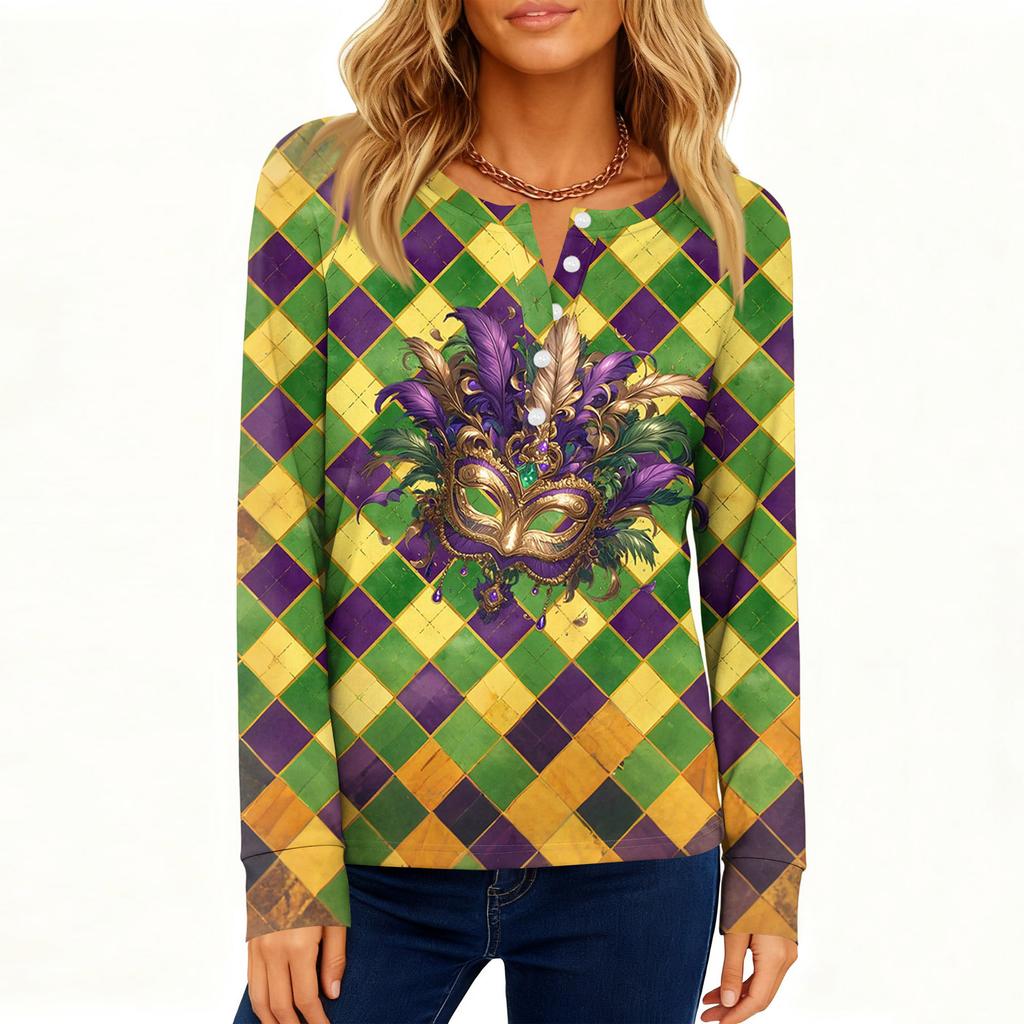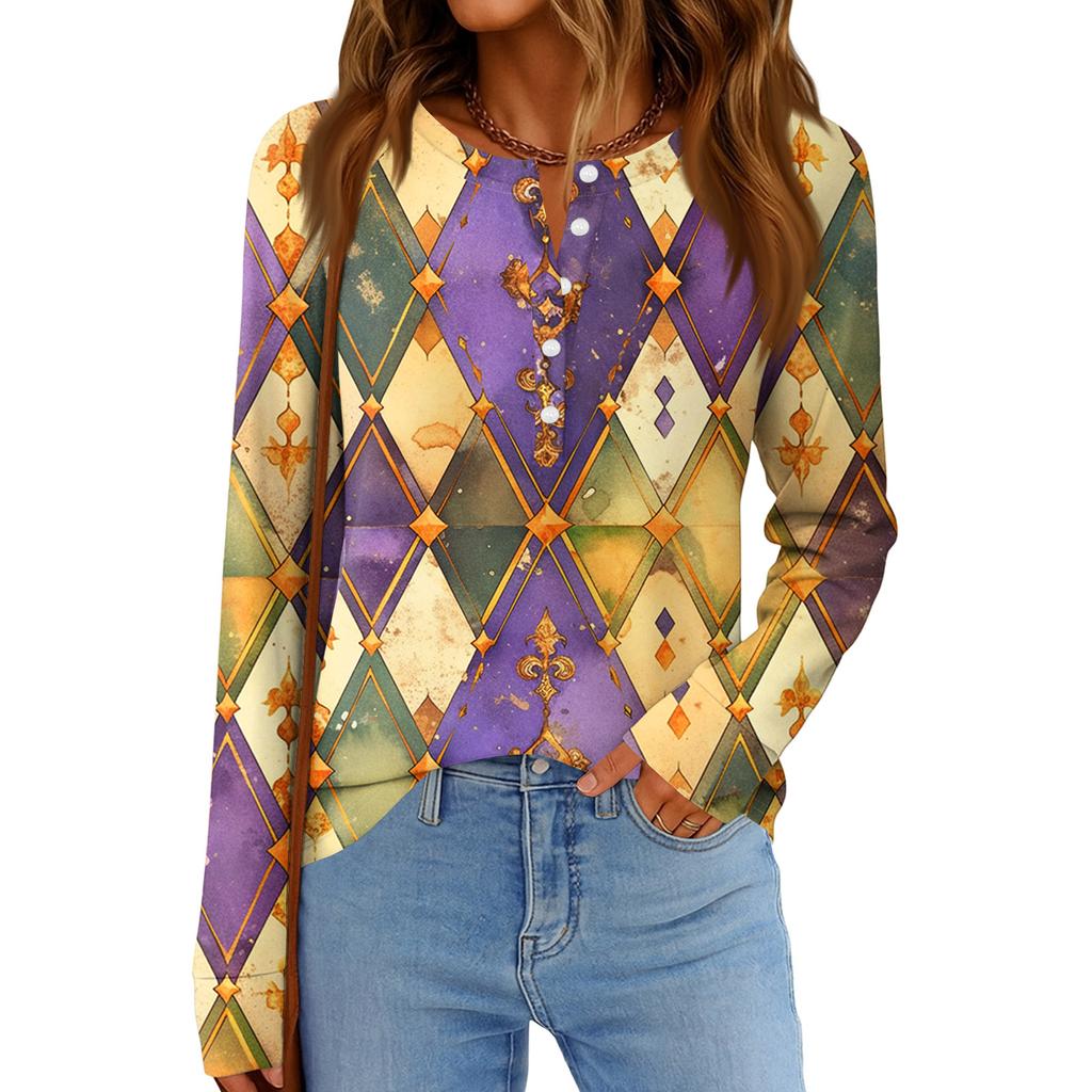 Женская модная свободная повседневная блузка с длинным рукавом и карнавальным принтом