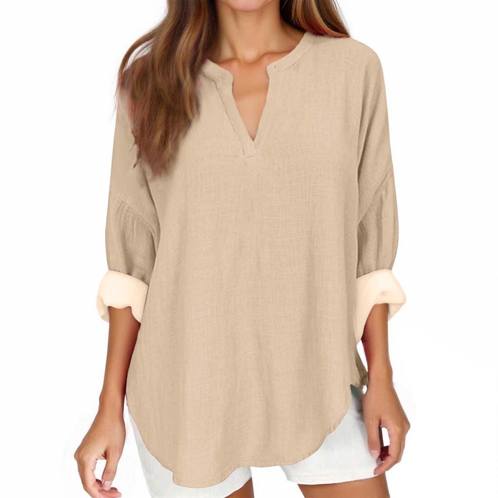 Женский модный повседневный однотонный женский топ с заниженными плечами и v-образным вырезом с принтом и длинными рукавами