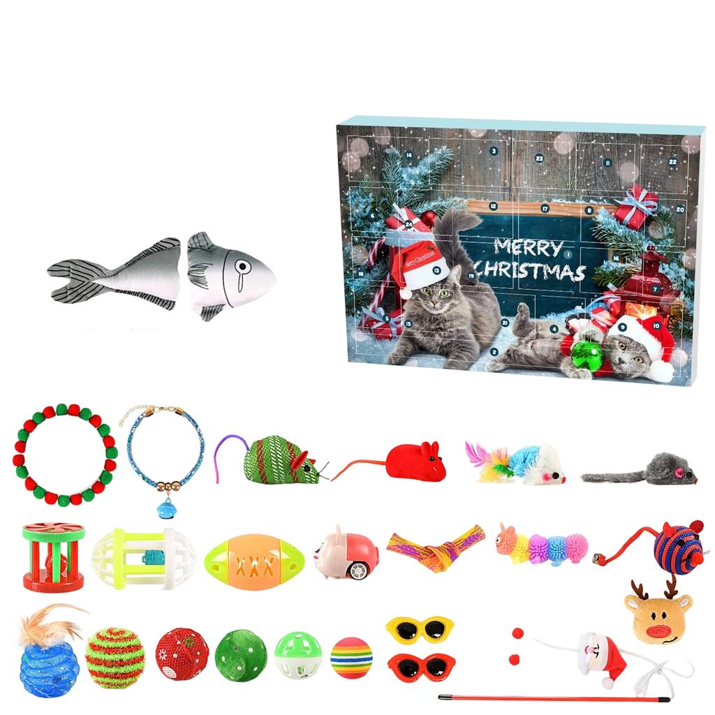 Рождественский Адвент-календарь, Игрушка для Рождественского Обратного отсчета 24 шт., Дразнилка-канал, Набор игрушек для питомцев, Игрушка-тоннель