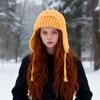 Женская шапка-авиатор, Женская шерстяная шапка для холодной погоды, Модная теплая вязаная шапка для большого обхвата головы