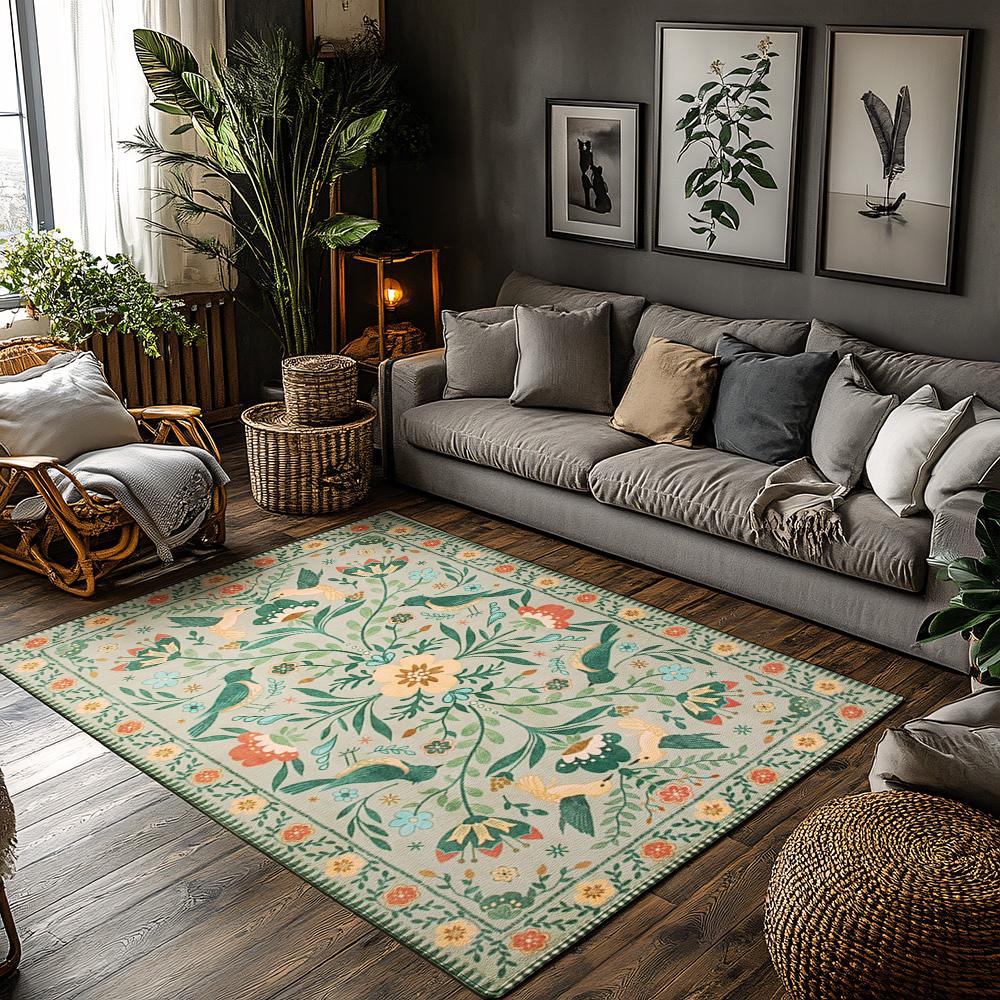 Крем-белый ковер с цветочным узором и птицами, ковер с богемным садовым узором, нескользящий коврик для гостиной, для домашнего декора