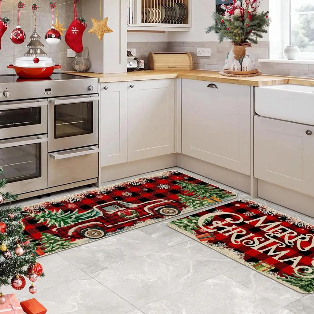 2PC Christmas Crystal Pile Home Decorative Carpet Kitchen Entryway Bathroom Non-Slip Machine Washable Carpet