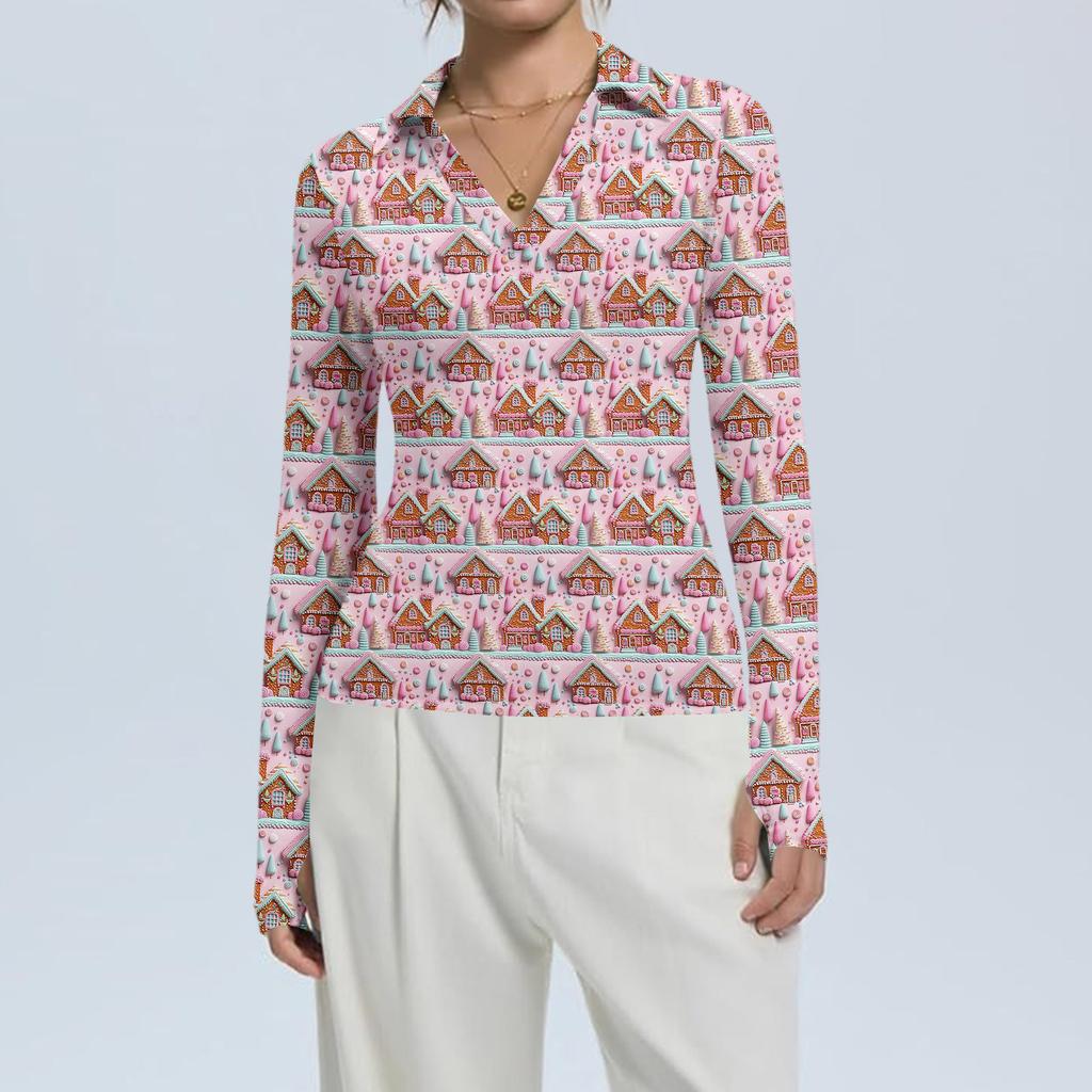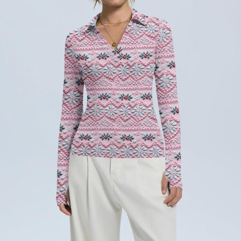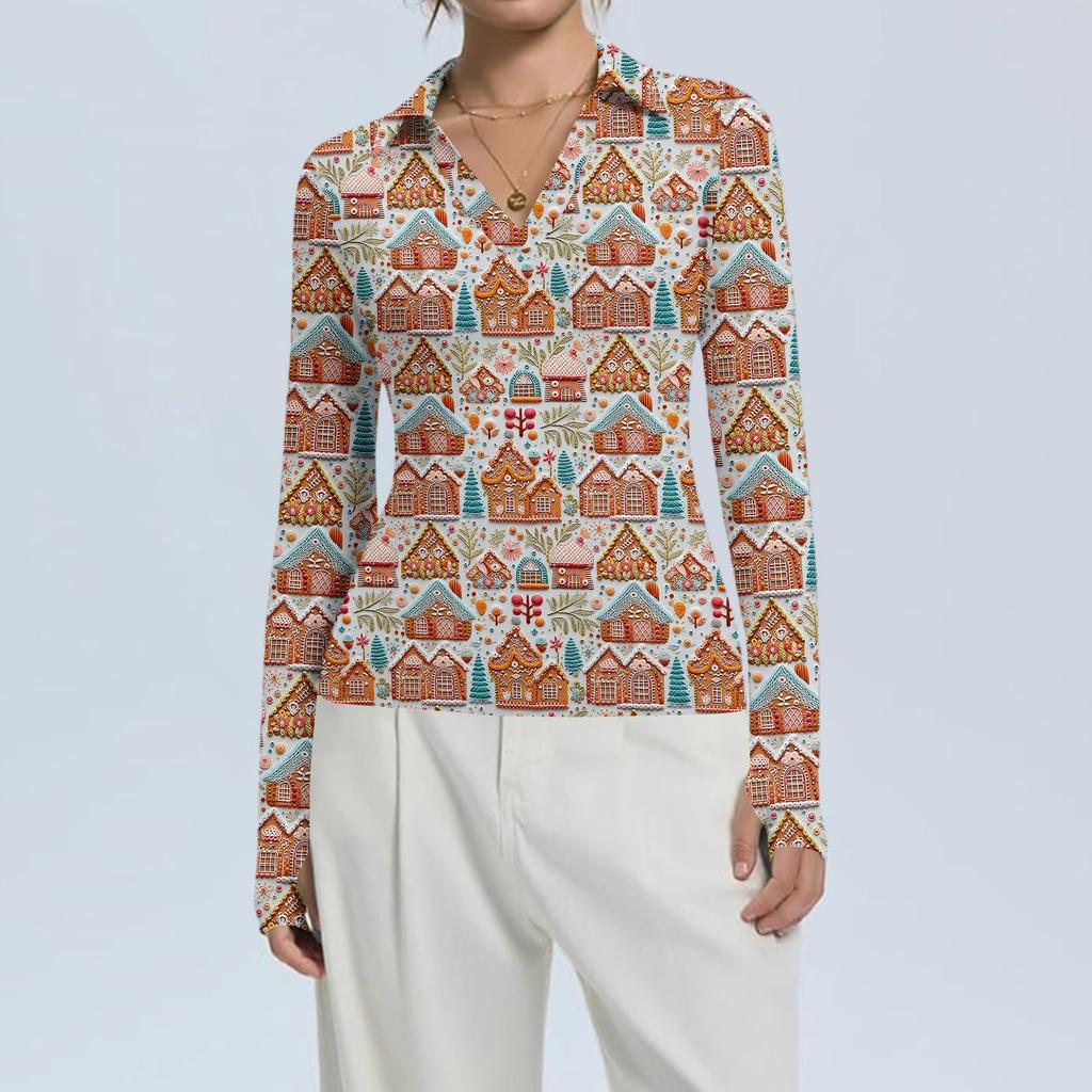 Женская модная повседневная блузка с V-образным вырезом, длинными рукавами и принтом на рождественскую тематику, застегивающаяся на пуговицы