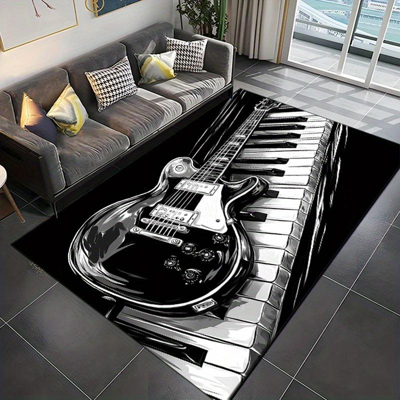 Роскошный бархатный ковер для гитары и пианино - Нескользящий черно-белый музыкальный ковер для декора спальни и гостиной