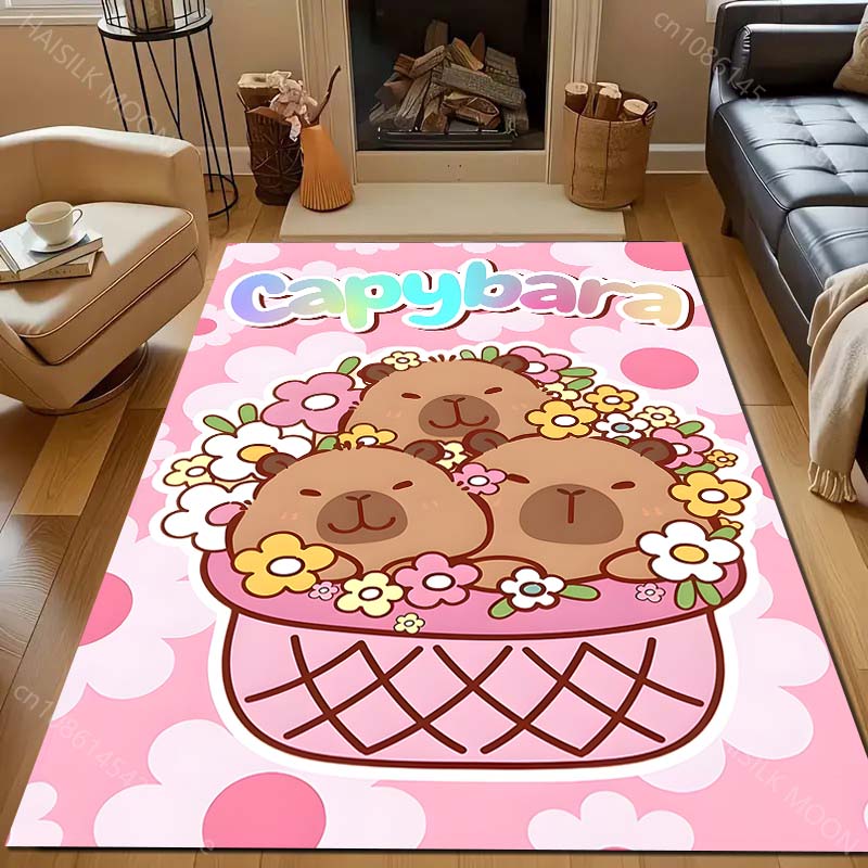 Cute Capybara Print Carpet for Bedroom Living Room Bedside Sofa Floor Mat Modern Home Decor Area Rug Kids Room