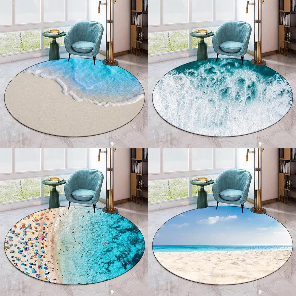 Круглый ковер с рисунком морского пляжа, коврик для пола для гостиной, дивана, противоскользящий, домашнее украшение, коврик для пола для спальни, ванной комнаты, впитывающий