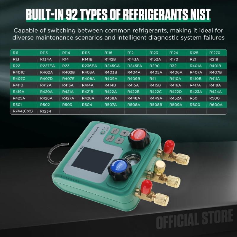 Встроенные 92 типа хладагентов NIST, мощная вычислительная мощность, может переключаться между распространенными хладагентами по желанию, подходит для различных ситуаций обслуживания; Неисправность интеллектуальной диагностической системы.