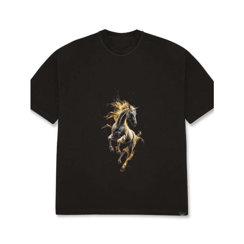Футболка оверсайз Черная лошадь с дизайном пламени Графический принт Повседневная уличная одежда для мужчин