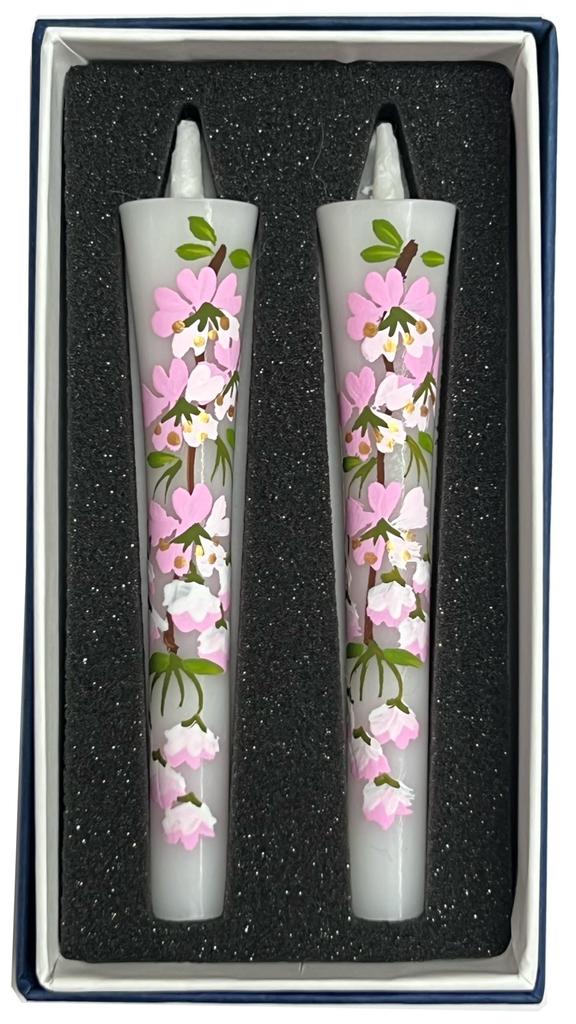 Ручная роспись Цветочные свечи, Размер 3, Дизайн Сакура, Японские свечи, Набор из 2 шт. (Дизайн с ручной росписью цветения сакуры), Идеально для буддистов