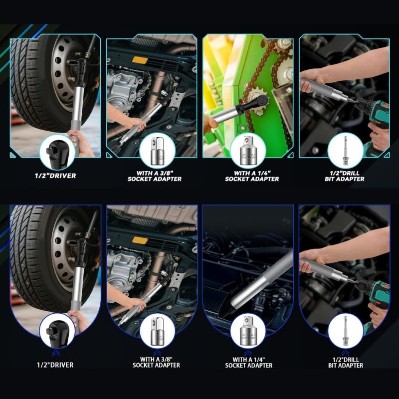 Ratcheting Wrench Spanner Kit 4 Adapters Corrosion Resistant Steel Ergonomic Grip Suitable For Mechanics And DIY Project